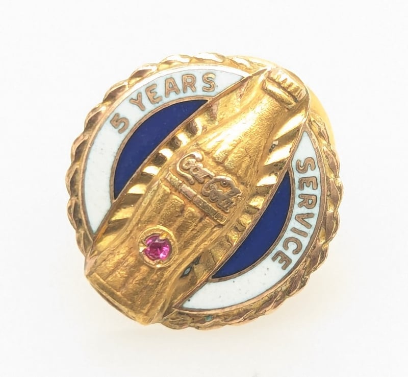 Five Years Service Coca-Cola Pin With Round Cut Topaz, Pin Weight: 3.46Grams,
