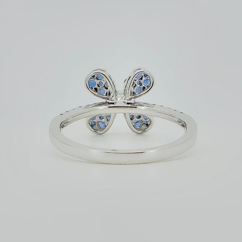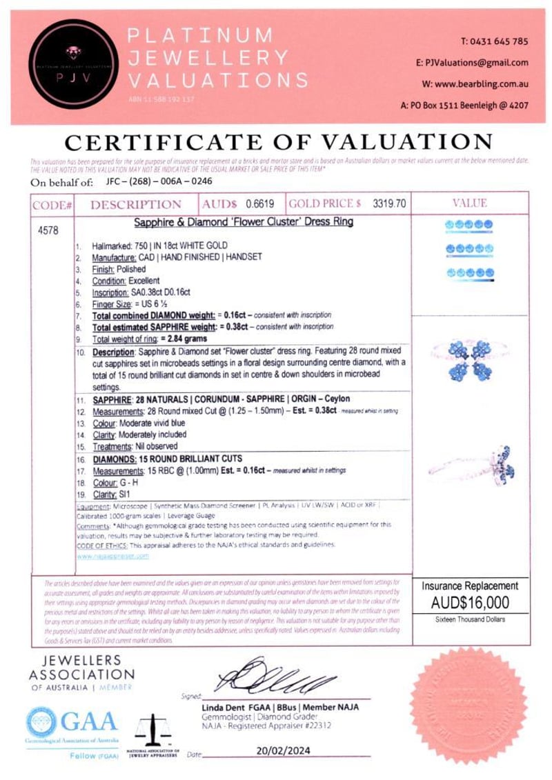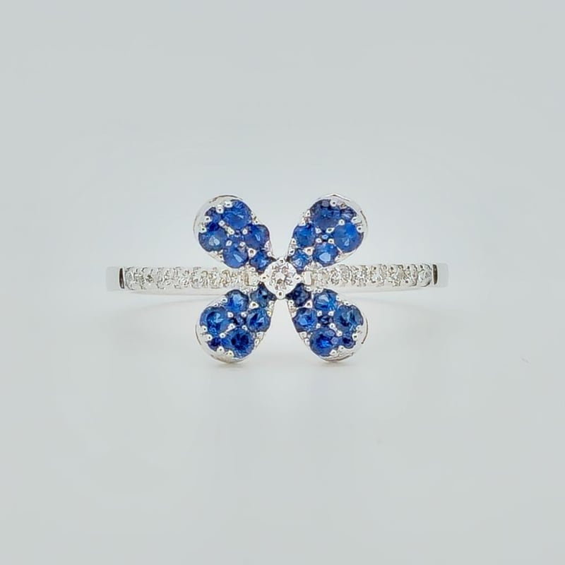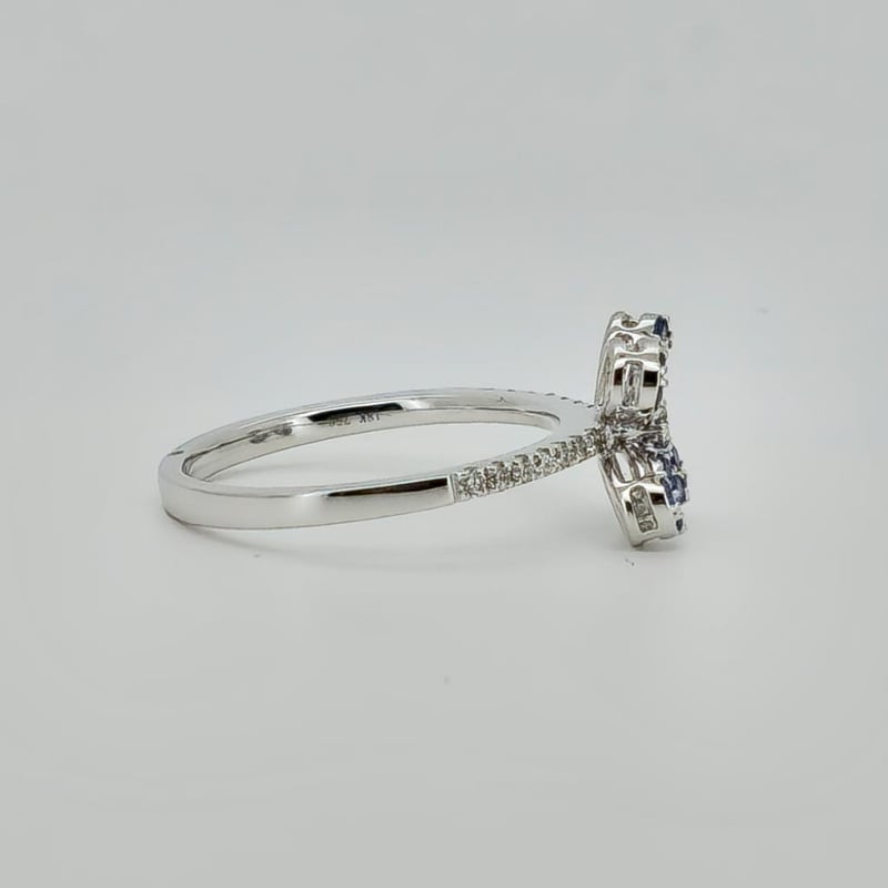 18CT WHITE GOLD CEYLON SAPPHIRE AND DIAMOND FLORAL CLUSTER RING