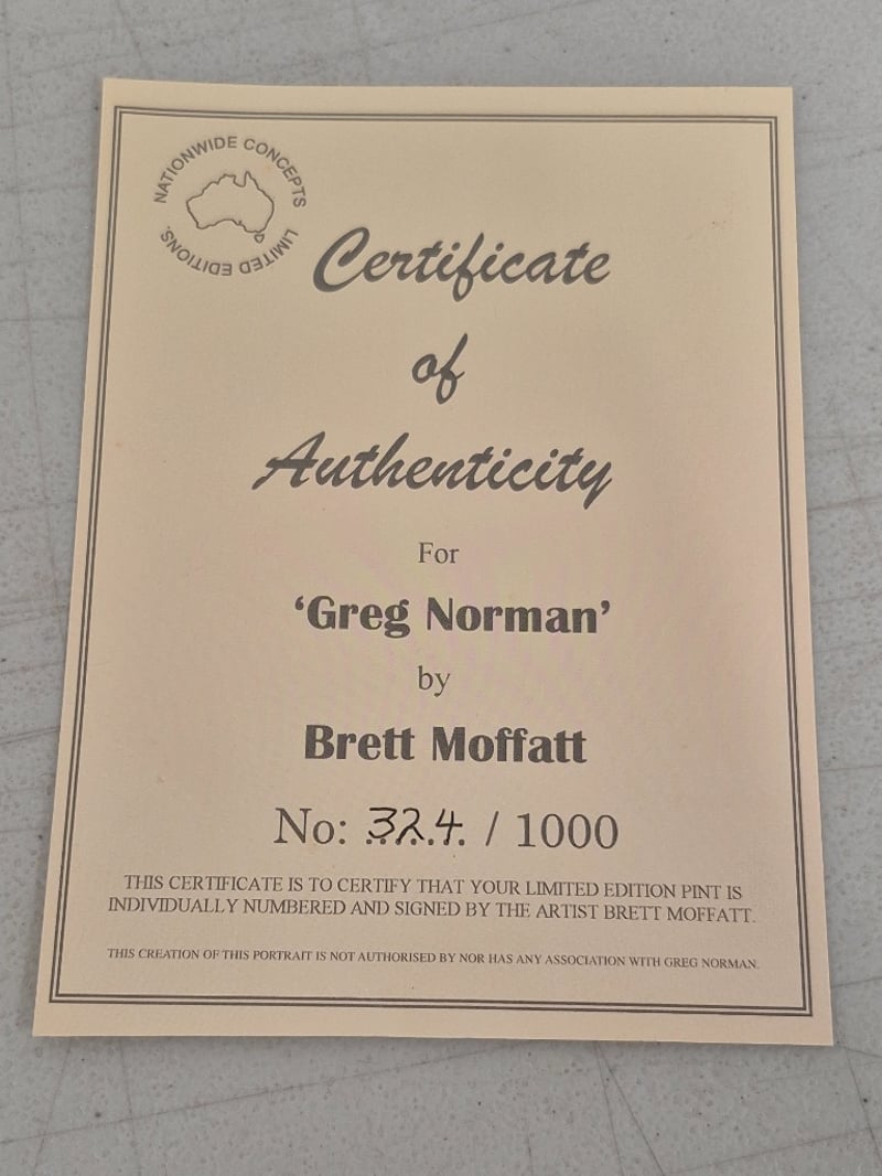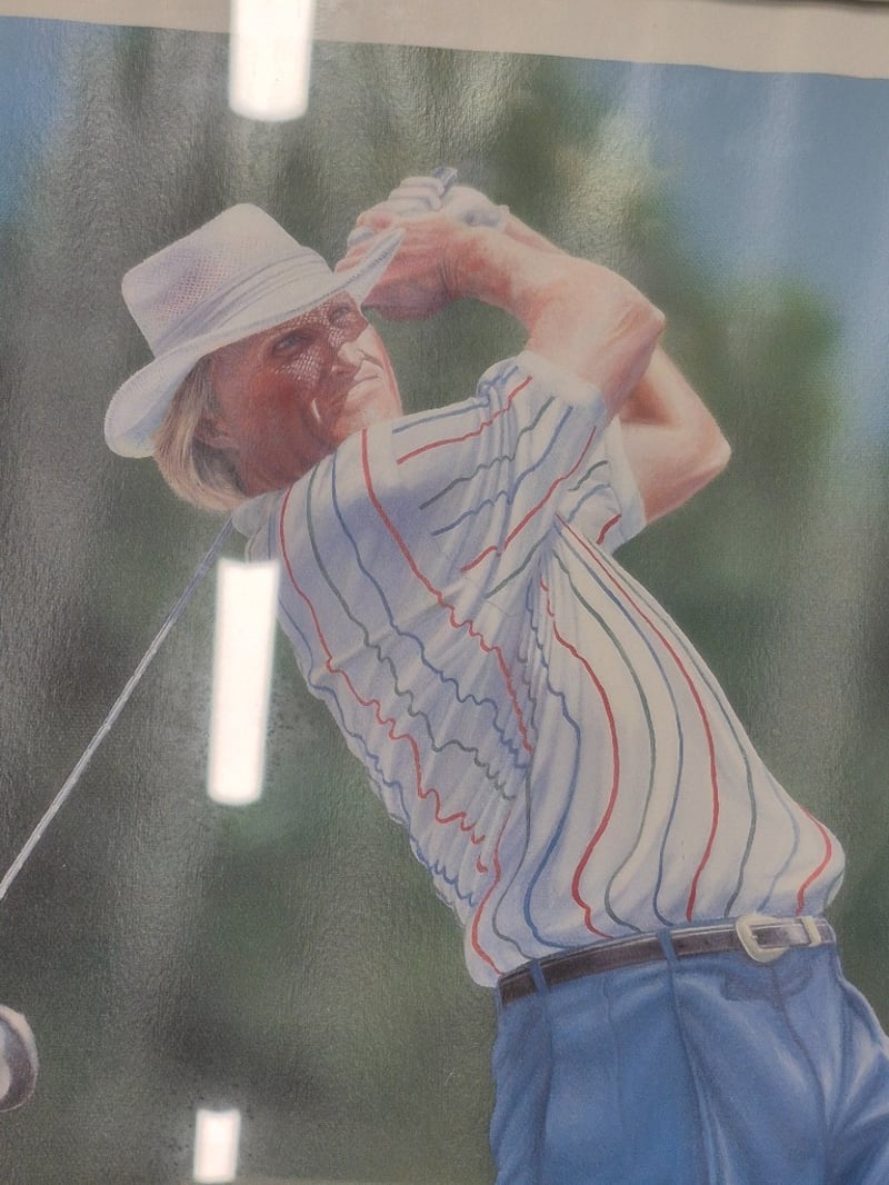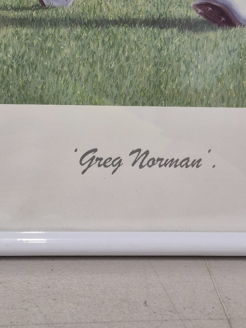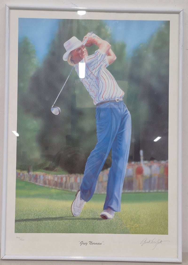 GREG NORMAN GOLF SWING LIMITED EDITION SIGNED PRINT BY BRETT MOFFATT