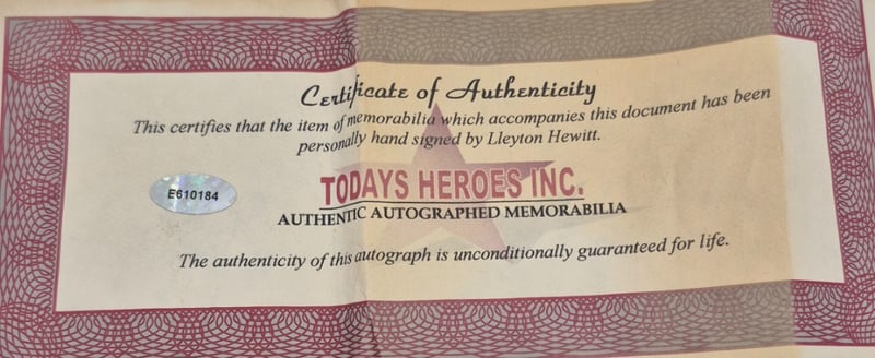 LLEYTON HEWITT SIGNED TENNIS BALLCertificate Of AuthenticityCondition: Good - Refer To Images586369+26