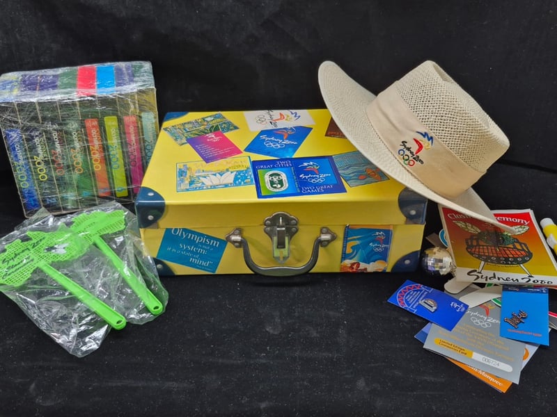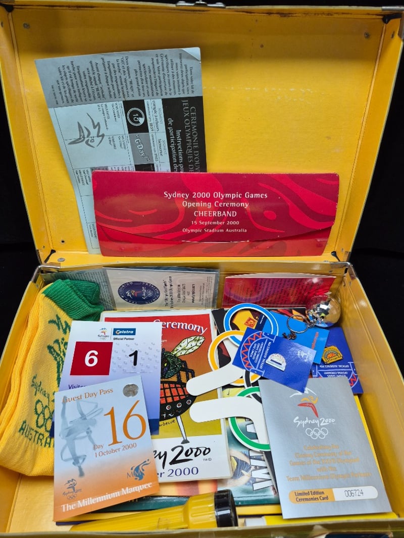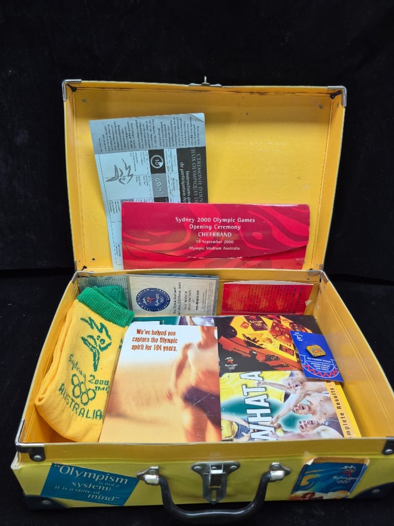 SYDNEY 2000 OLYMPIC GAMES MEMORABILIA COLLECTION IN YELLOW SOUVENIR SUITCASE