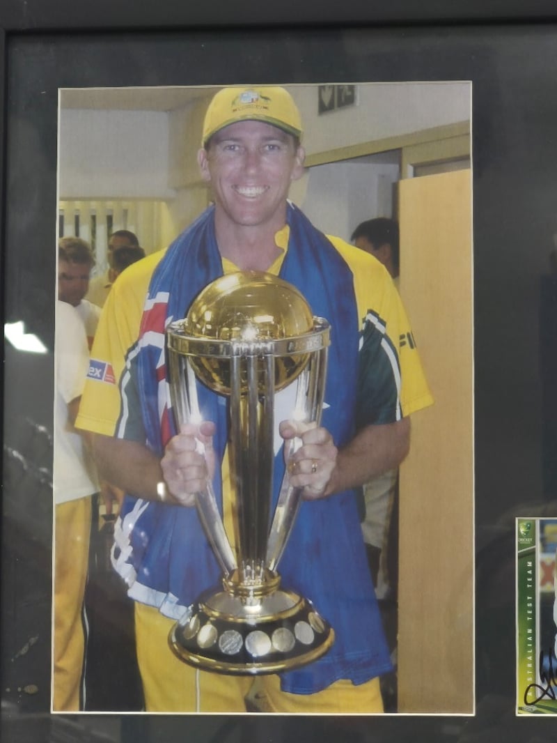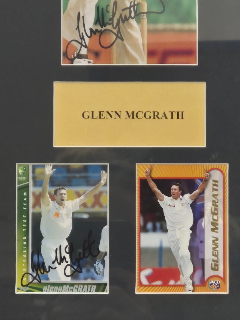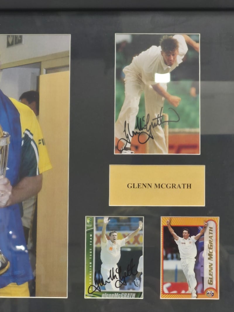 GLENN MCGRATH SIGNED CRICKET MEMORABILIA FRAMED DISPLAY