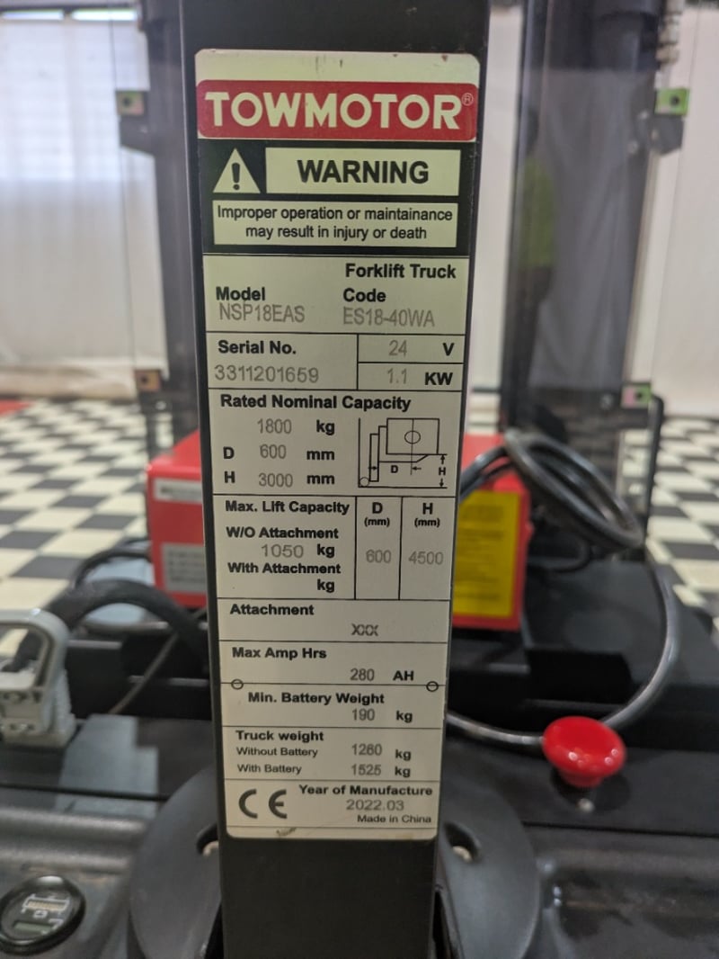 2022 Towmotor Walker Stacker NSP18EAS Yellow