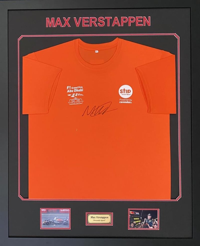 MAX VERSTAPPEN PERSONALLY SIGNED REPLICA PIT SHIRTFramed Using Double Mats, 2 Unsigned Photographs And A Plaque. Hand Signed By Max Veratappen Using A Black MarkerAccompanied By A Certificate Of AuthenticitySize: 109cm x 89cmCondition: Good - Refer To Images488460+8