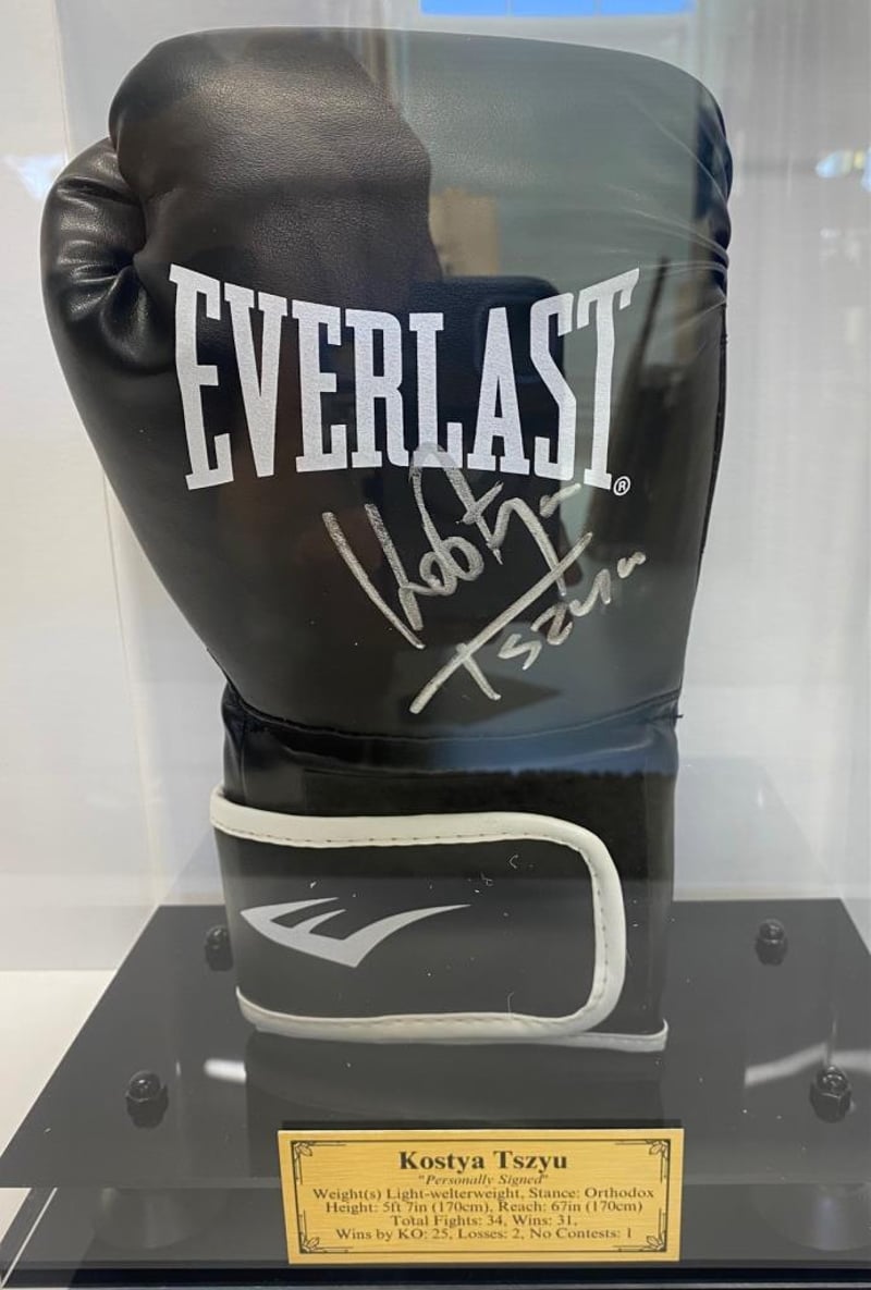 KOSTYA TSZYU PERSONALLY SIGNED BOXING GLOVE The Boxing Glove Is Presented In A Perspex Display Case. Hand Signed By Kostya Tszyu Using A Silver Marker Accompanied By A Certificate Of AuthenticitySize: 40cm x 27.5cmCondition: Good - Refer To Images488460+7