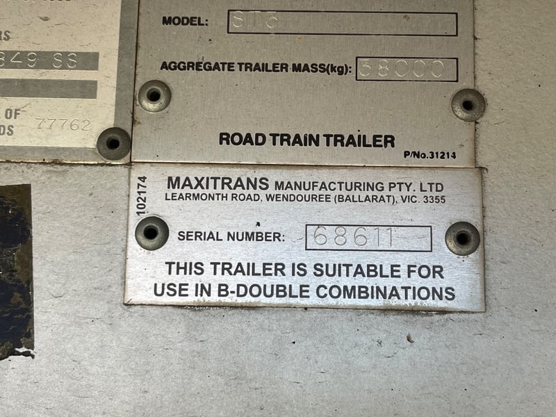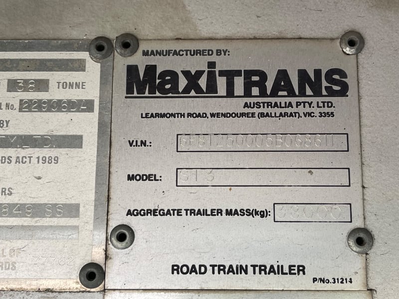 2005 Maxitrans ST3 Tri-Axle B Curtainsider Trailer Year: 2005 Make: Maxitrans Model: ST3 Body: B Curtainsider Trailer Configuration: Tri-Axle Suspension: Airbag ATM: 38,000 kg Dimensions Approx : 14m x 2.5m x 4m (L x W x H) VIN: VIN:6F8T250005B068611 Description: 2x Toolbox, Cargo Gates Lloyds Stock #991085+1