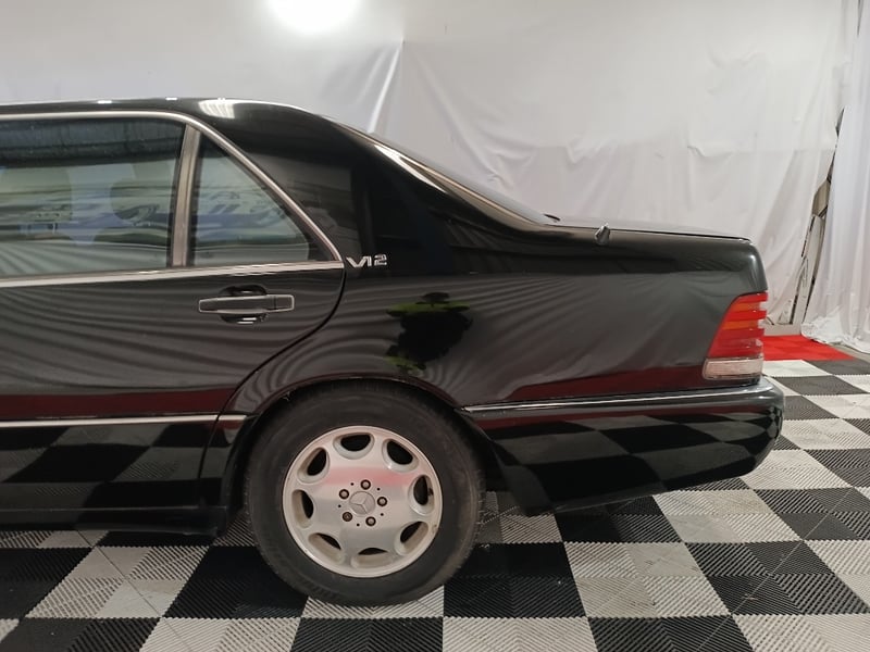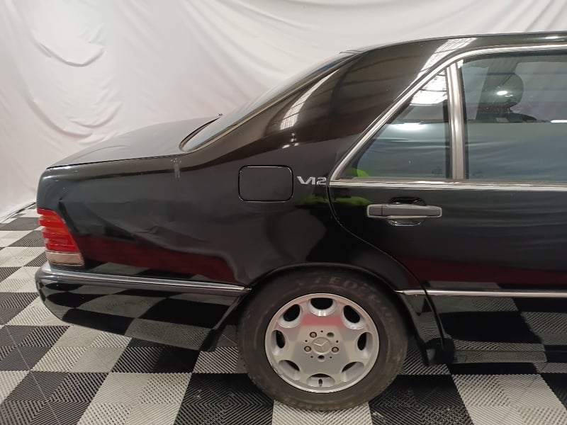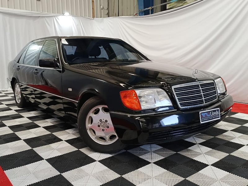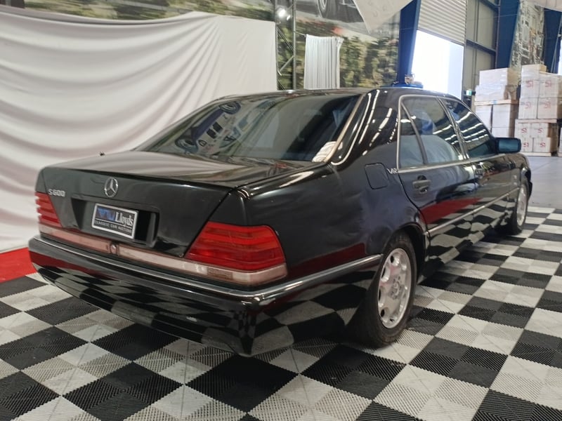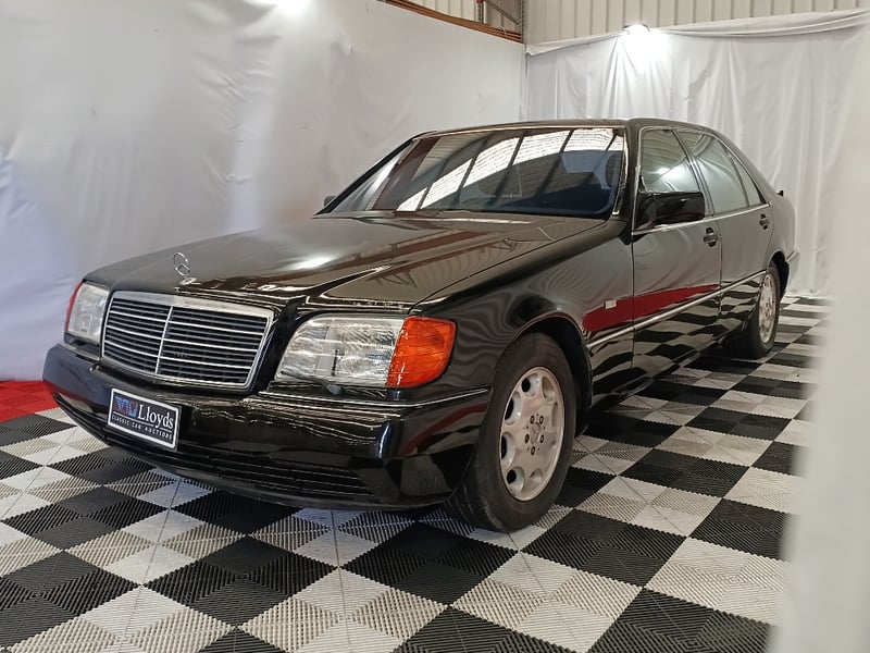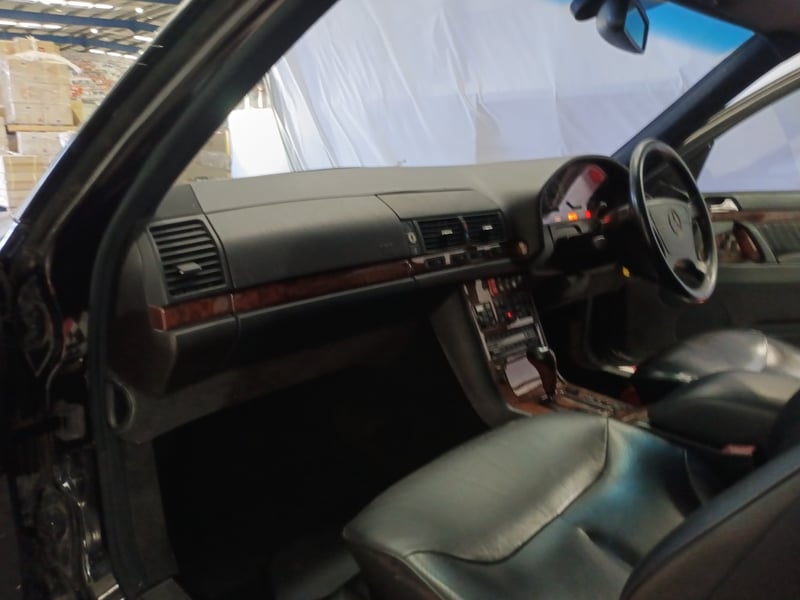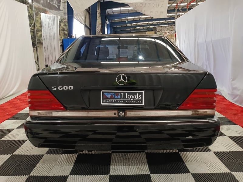 1993 Mercedes‑Benz W140 S600 four‑door sedan finished in Black. Odometer indicating 219,964 kilometres. Seating for four occupants.