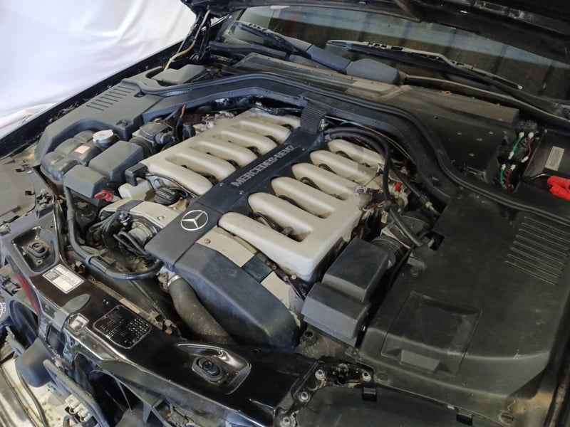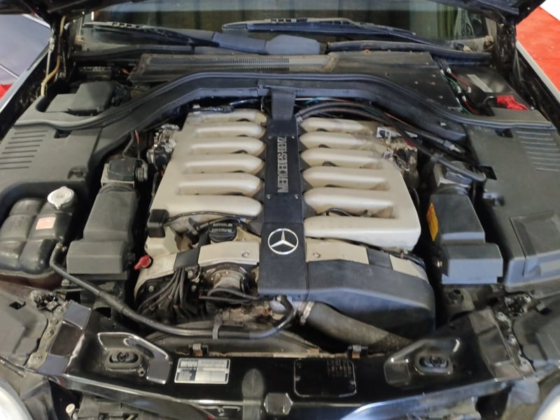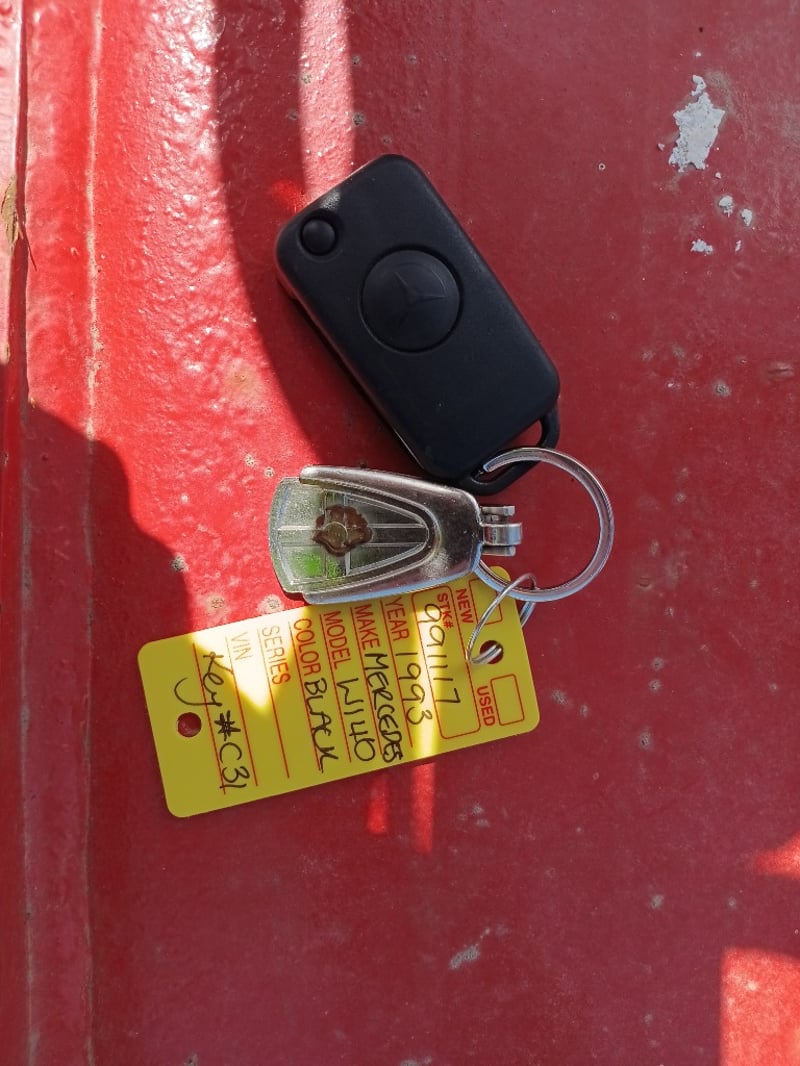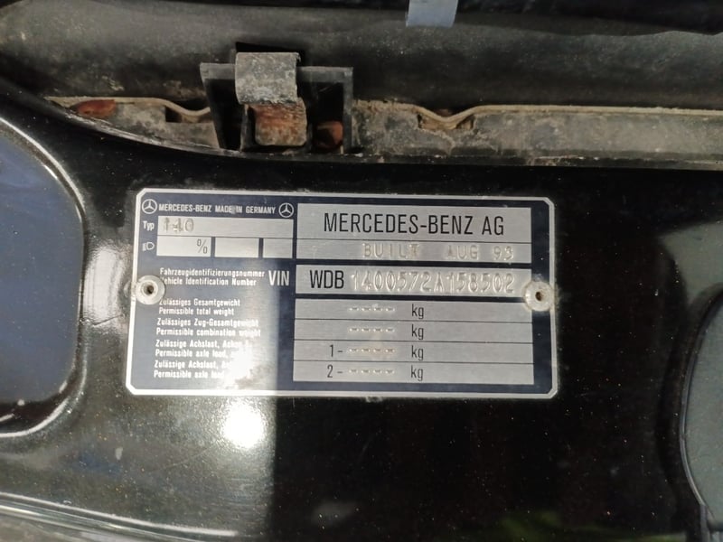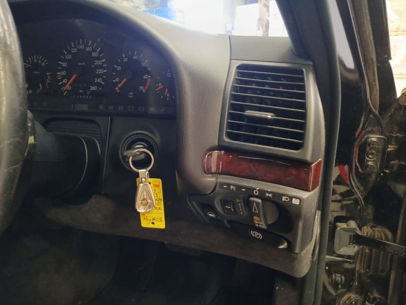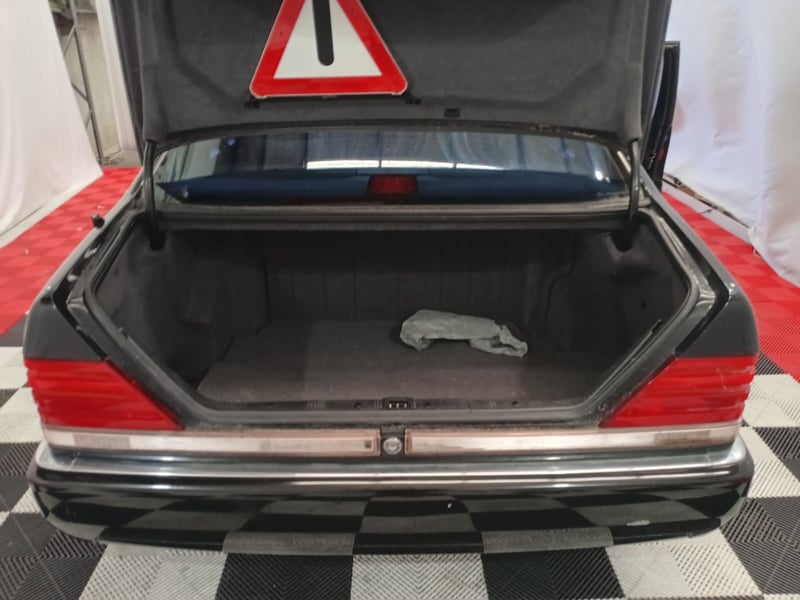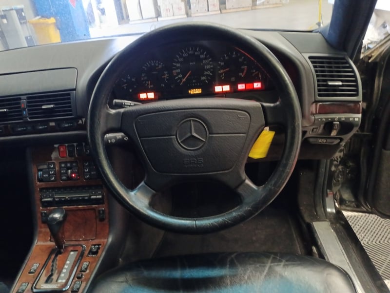 1993 Mercedes‑Benz W140 S600 four‑door sedan finished in Black. Odometer indicating 219,964 kilometres. Seating for four occupants.