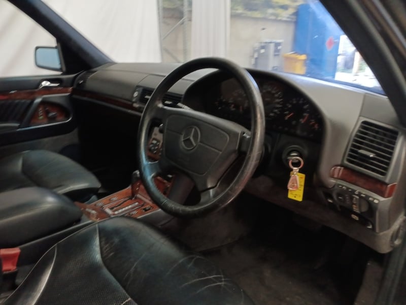 This example is equipped with air conditioning, power windows, SRS airbags, leather interior and central locking. The W140 platform is known for its solid construction, smooth ride quality and timeless executive styling.