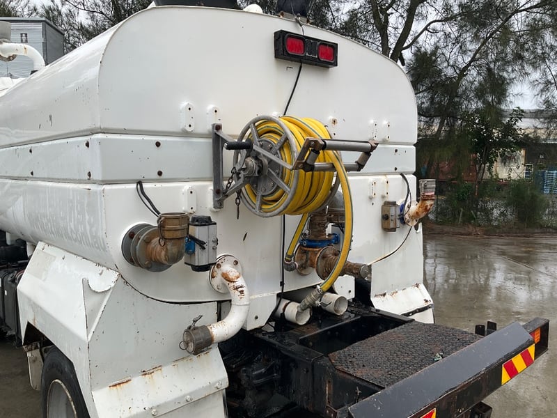 Description: water truck in working condition, 8000 litre water tank, power windows, JVC cd player, internal controls for rear equipment