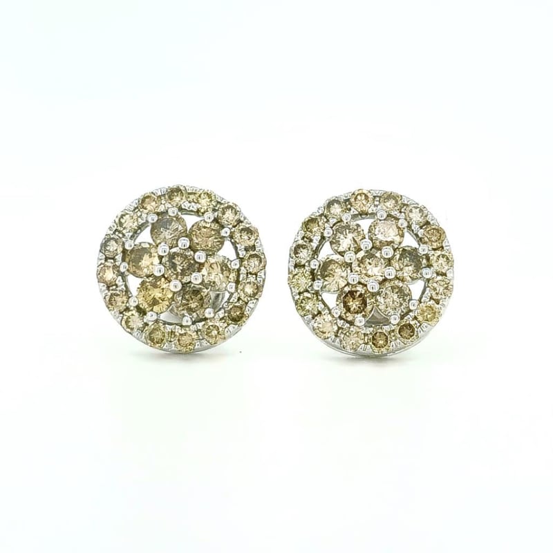 9CT WHITE GOLD FANCY CHAMPAGNE BROWN DIAMOND FLORAL STUD EARRINGS