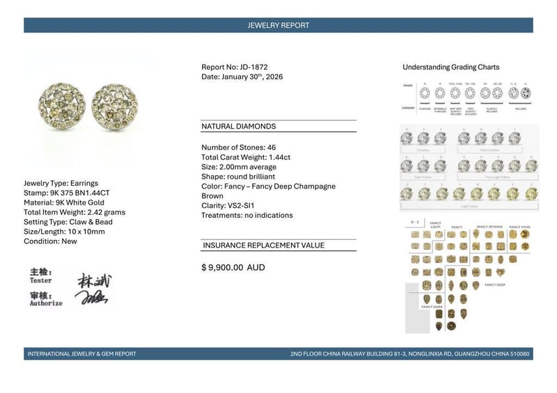 Featuring, 46R Ound Brilliant Cut, Fancy-Fancy Deep Champagne Brown Diamonds (1.44Ct Tdw, Vs2-Si1 Clarity), Claw/Bead Set.