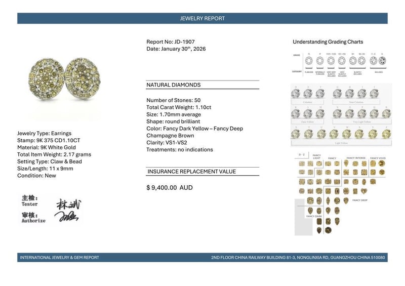 Featuring, 50 Round Brilliant Cut, Fancy Dark Yellow - Fancy Deep Champagne Brown Diamonds (1.10Ct Tdw, Vs1-Vs2 Clarity), Claw/Bead Set.