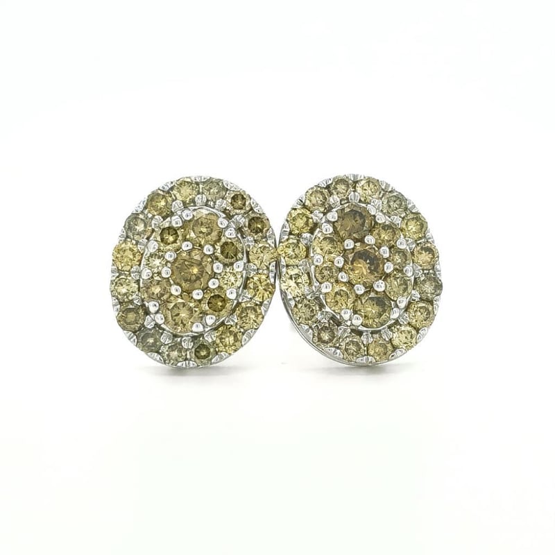9CT YELLOW GOLD FANCY YELLOW AND CHAMPAGNE BROWN DIAMOND CLUSTER STUD EARRINGS