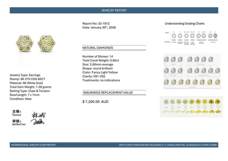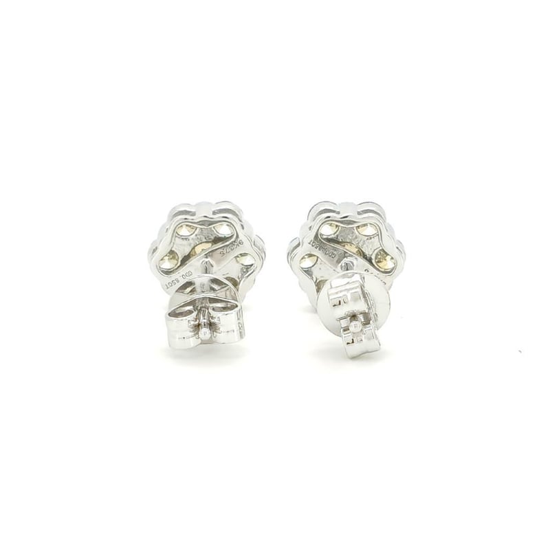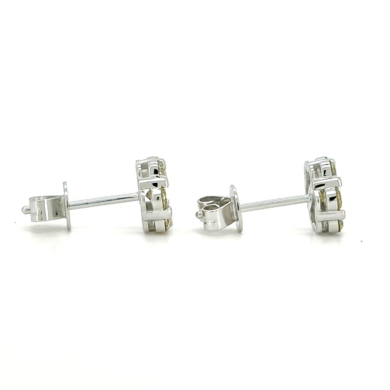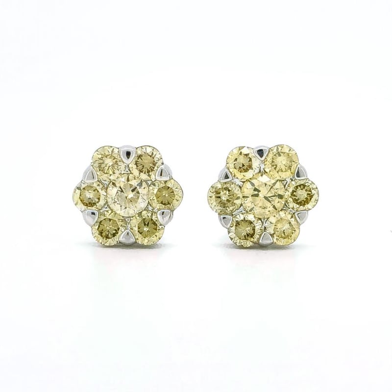 9CT WHITE GOLD FANCY YELLOW DIAMOND FLORAL STUD EARRINGS