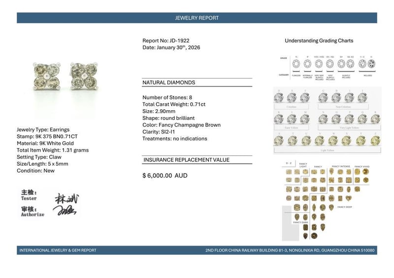Featuring, 8 Round Brilliant Cut, Fancy Champagne Brown Diamonds (0.71Ct Tdw, Si2-I1 Clarity), Claw Set.