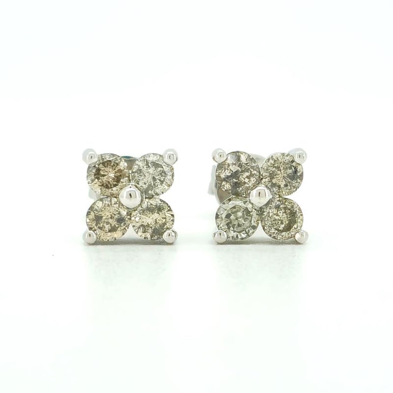 9CT WHITE GOLD FANCY CHAMPAGNE BROWN DIAMOND CLUSTER STUD EARRINGS