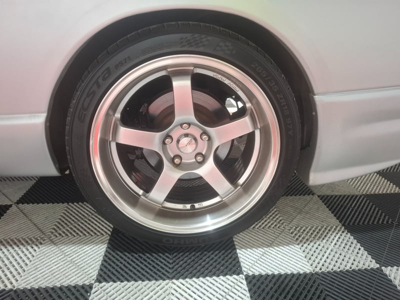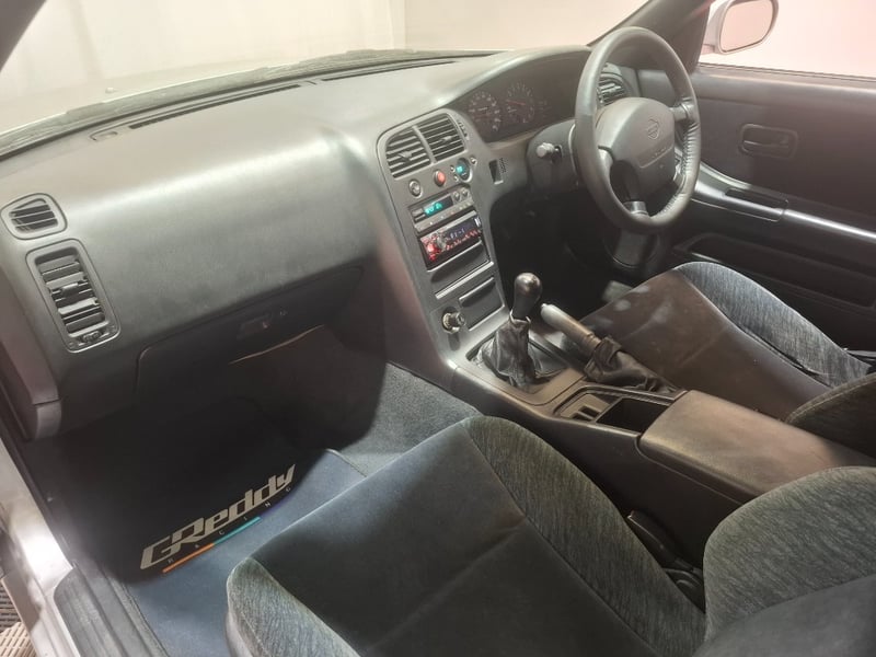 After market Pioneer head unit with manual, GReddy driver and front passenger floor mats, storage compartments, manual handbrake, Advan Racing rims with Kumho 265/35 ZR18 95Y tyres.