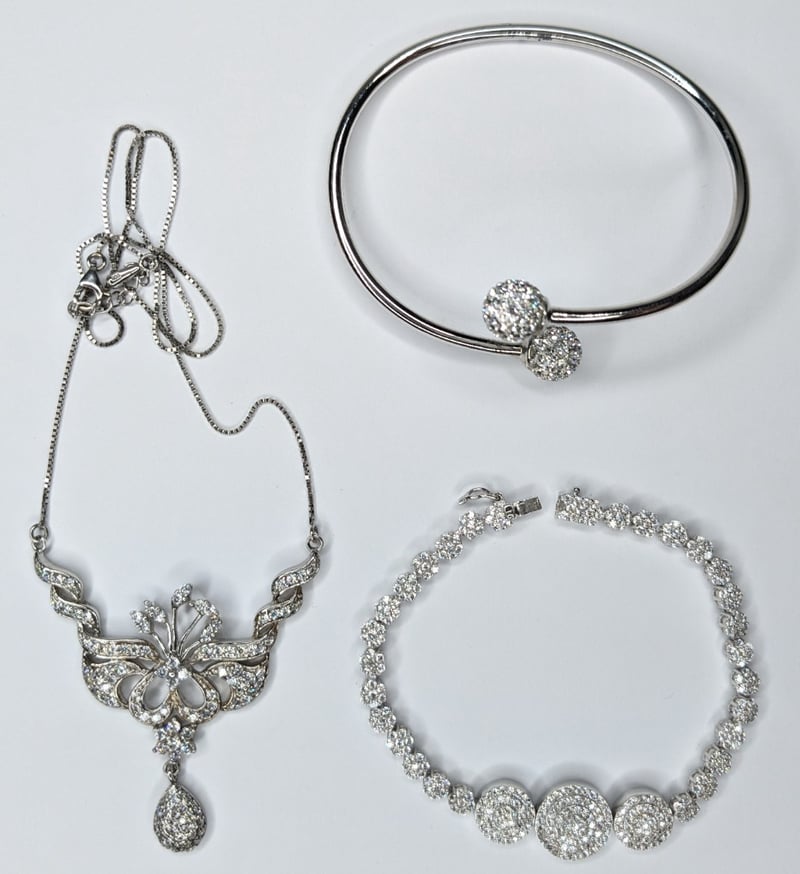 Sterling Silver Cubic Zirconia Necklace And 2 Bracelets