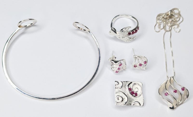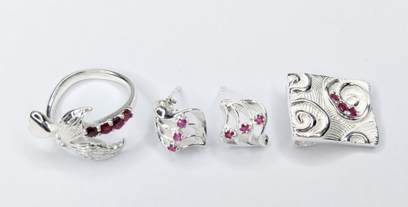 Sterling Silver Gemstone Ruby Necklace, Bracelet, Ring, Pendant And Earrings