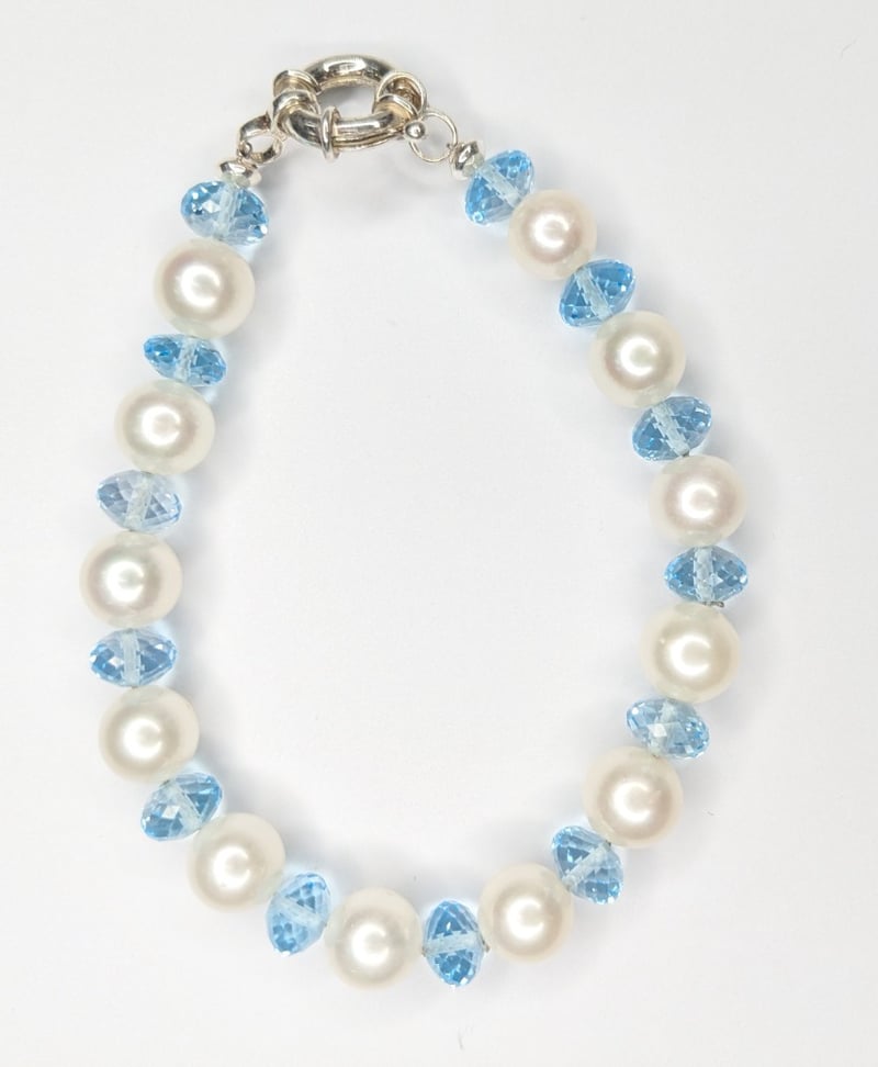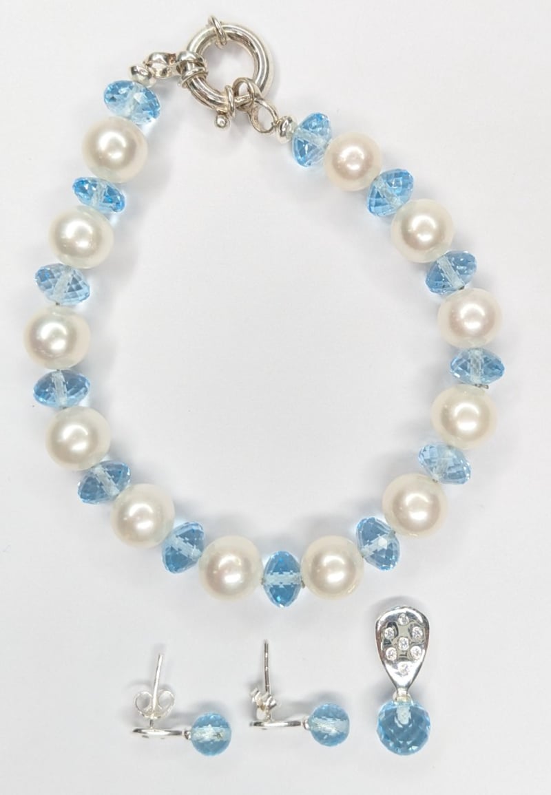 STERLING SILVER BLUE TOPAZ AND PEARL BUNDLE.
