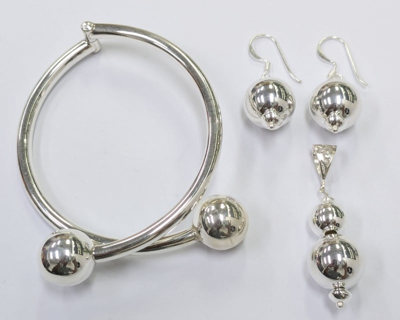 Sterling Silver Bangle, Earrings And Pendant