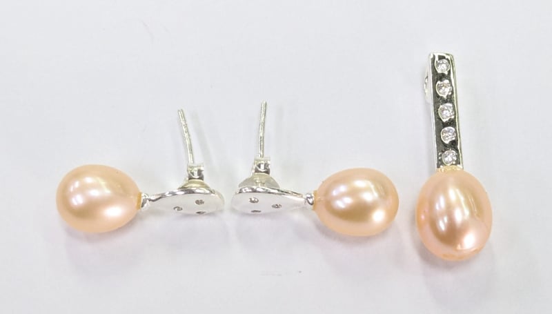 STERLING SILVER PEARL AND DIAMOND PENDANT AND EARRINGS.Total Item Weight: 4.00gDimensions: Height: 1.00mm, Width: 1.00mm, Depth: 1.00mmCondition: Good - Refer To ImagesInsurance Replacement Valuation Amount: $1,390.00FC163081+18