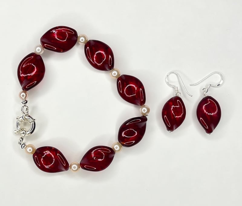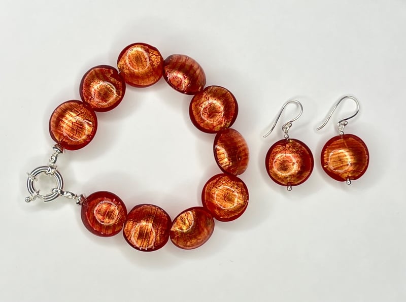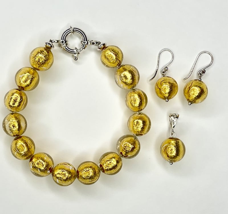 Sterling Silver Murano Glass 3 Bracelets, 3 Pairs Of Earrings And Pendant