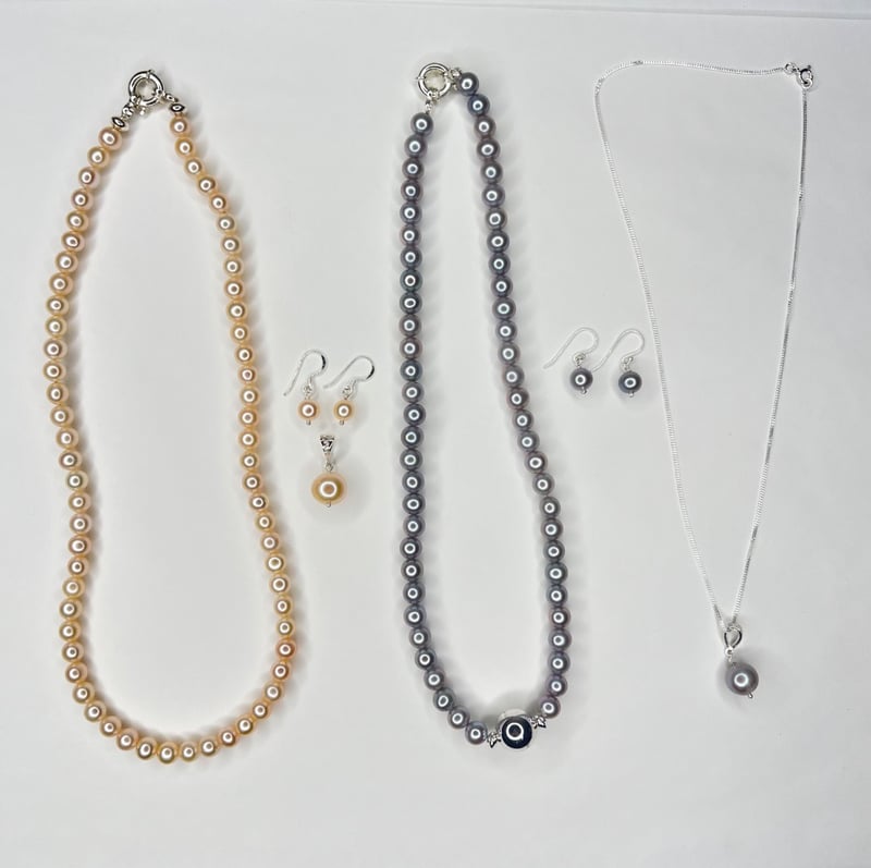 Sterling Silver Freshwater Pearl Pendant, 3 Necklaces And 2 Pairs Of Earrings