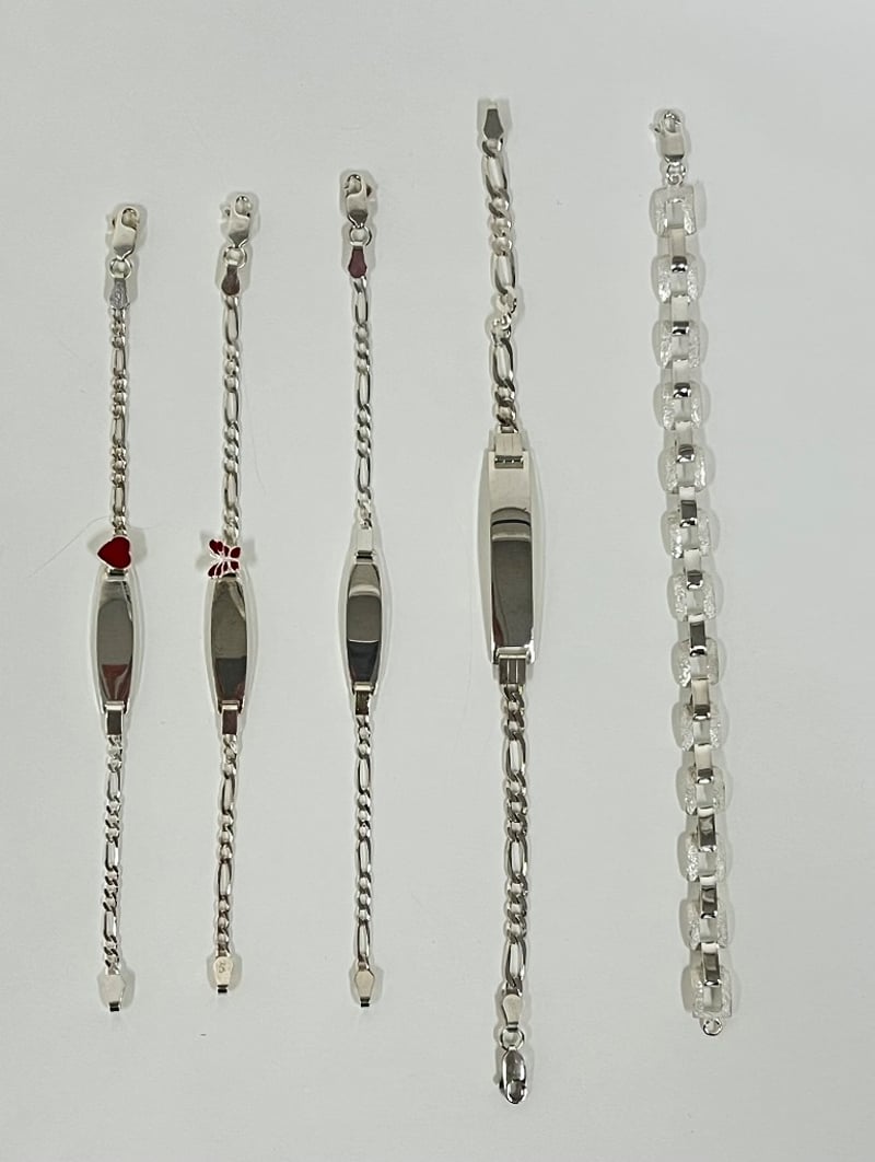 STERLIN SILVER BRACELET BUNDLE. QTY 5Sterling Silver 3 Id Bracelets, 2 Id Bracelets With MotifTotal Item Weight: 34.42gDimensions: Height: 1.00mm, Width: 1.00mm, Depth: 1.00mmCondition: Good - Refer To ImagesInsurance Replacement Valuation Amount: $1,220.00FC163081+32
