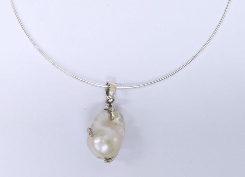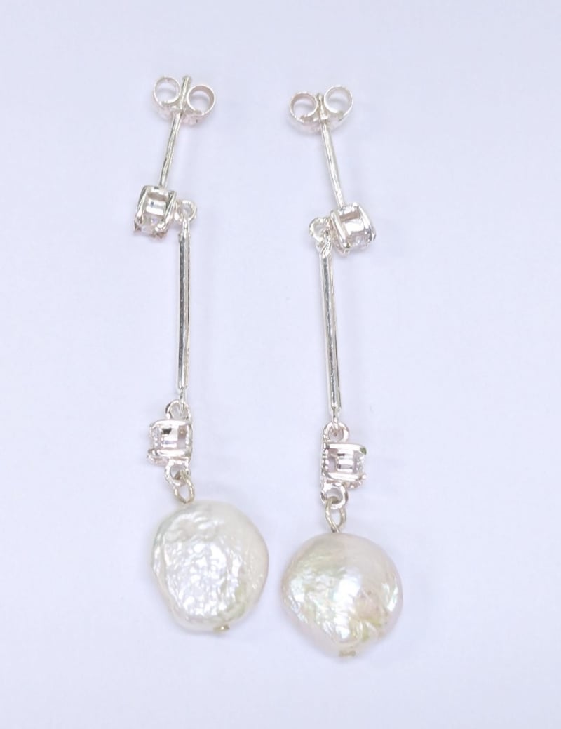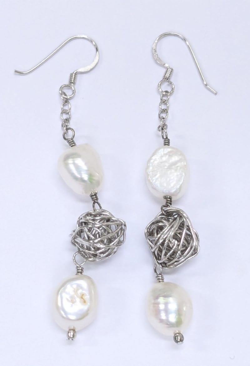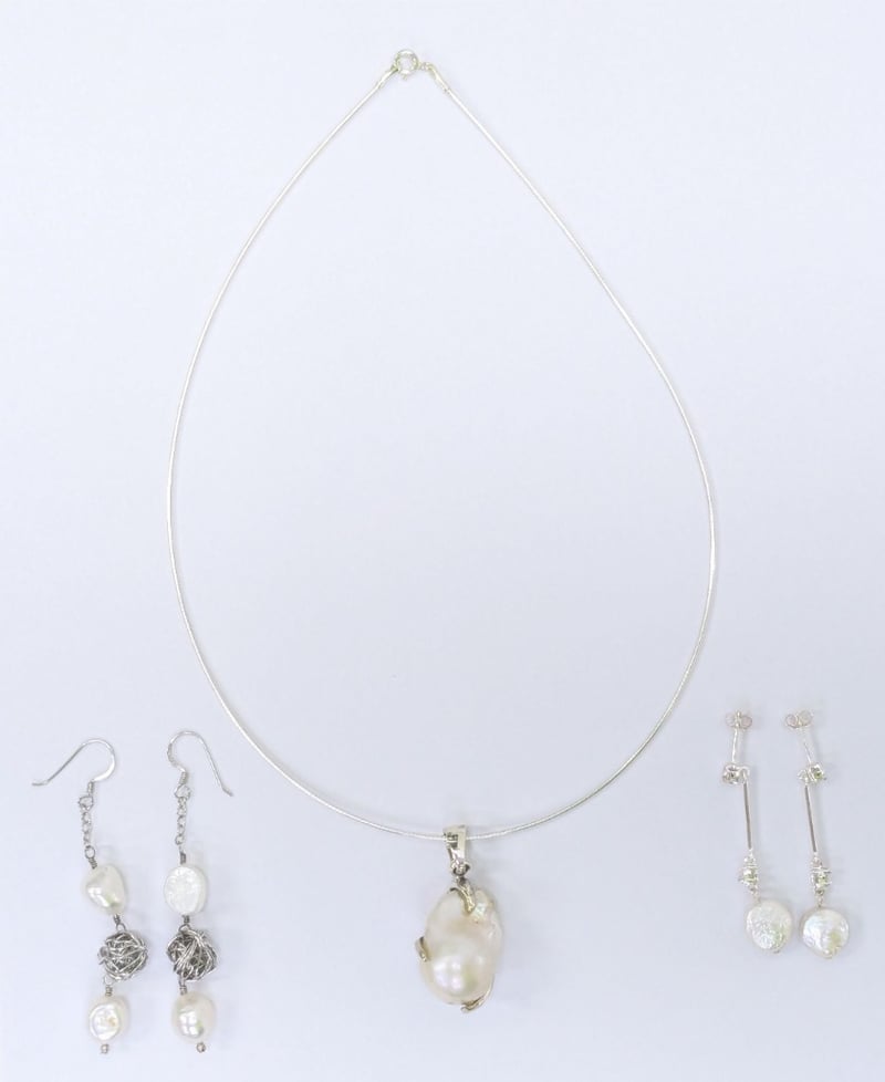 Sterling Silver Baroque Handmade Pendant On Chain And 2 Pairs Of Sterling Silver Pearl Earrings