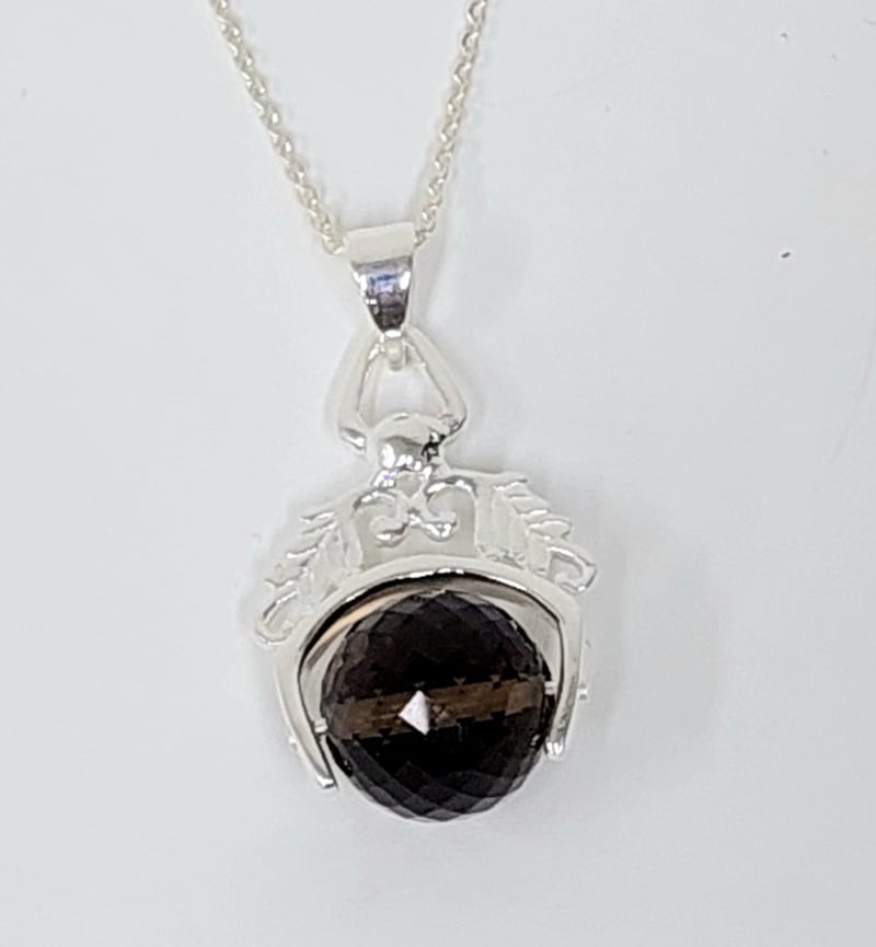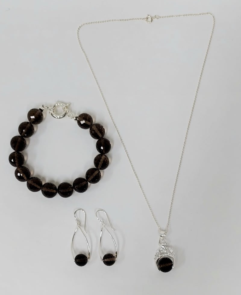 Sterling Silver Smokey Quartz Bracelet, Spinner Necklace And Earrings