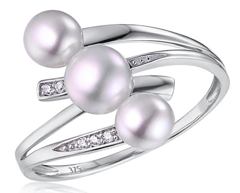 Rrp: $2299 - 9Ct White Gold Diamond & White Button Pearl Ring, Size 7. White Button Pearl Pwb-Rd-5.5-6Mm-1 Pwb-Rd-4.5-5Mm-2 Diamonds-0.025Ct. Weight: 1.78 Grams Markings: 9ct