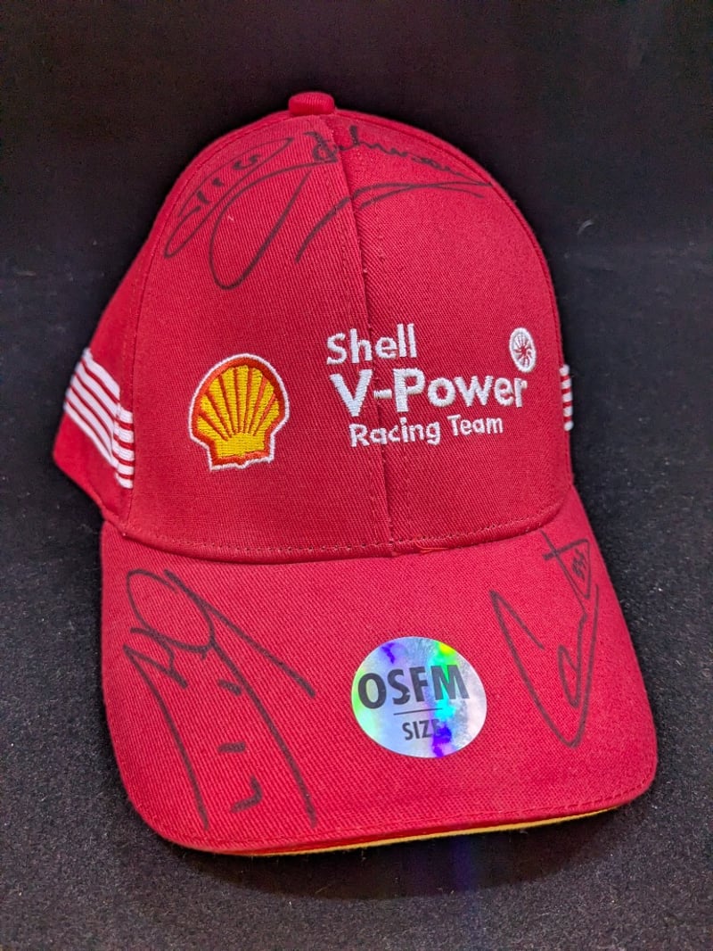 Details: The Shell Racing Hat Has Been Signed By Dick Johnson, Fabian Coulthard And Scott Mclaughlin