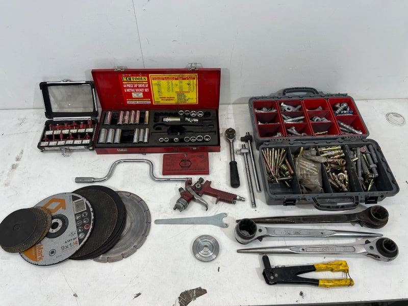 Assorted tools, including; ratchet podger wrenches, sockets, jumper leads, toolboxes etc, brands include; KC tools, Toledo etc