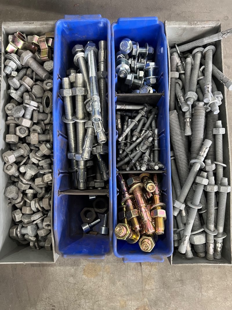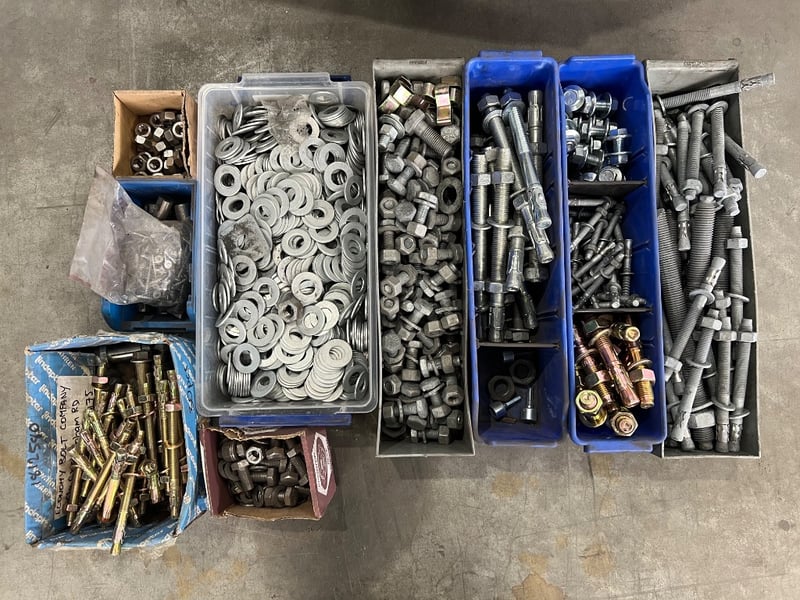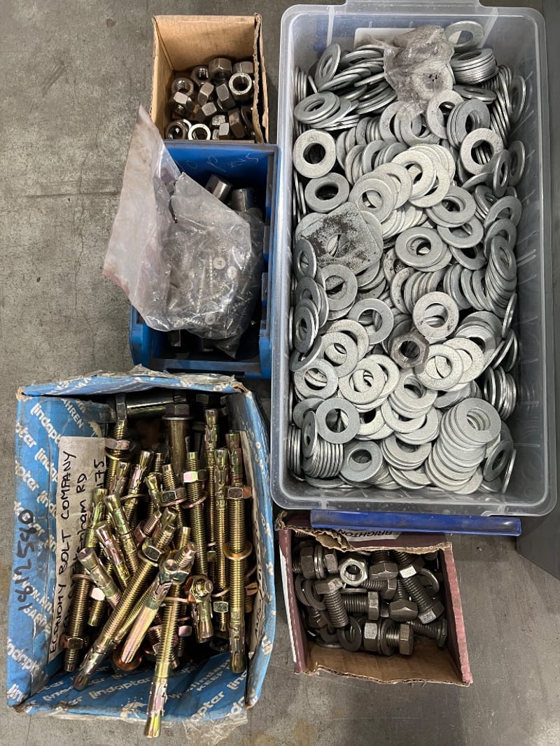 Assorted bolts, nuts and washers, including; hex bolts, flat washers, hex nuts etc