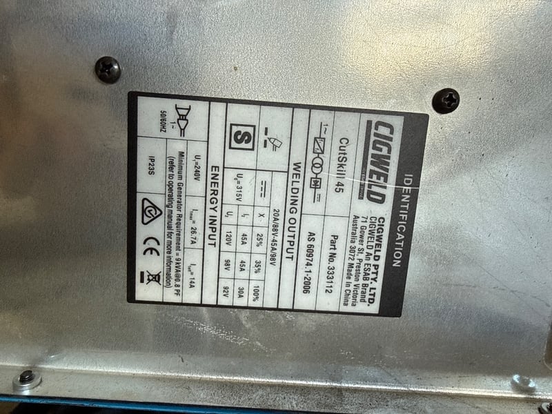 Plasma Cutter, Cigweld, Model-Cut Skill 45, Part No: 333112.