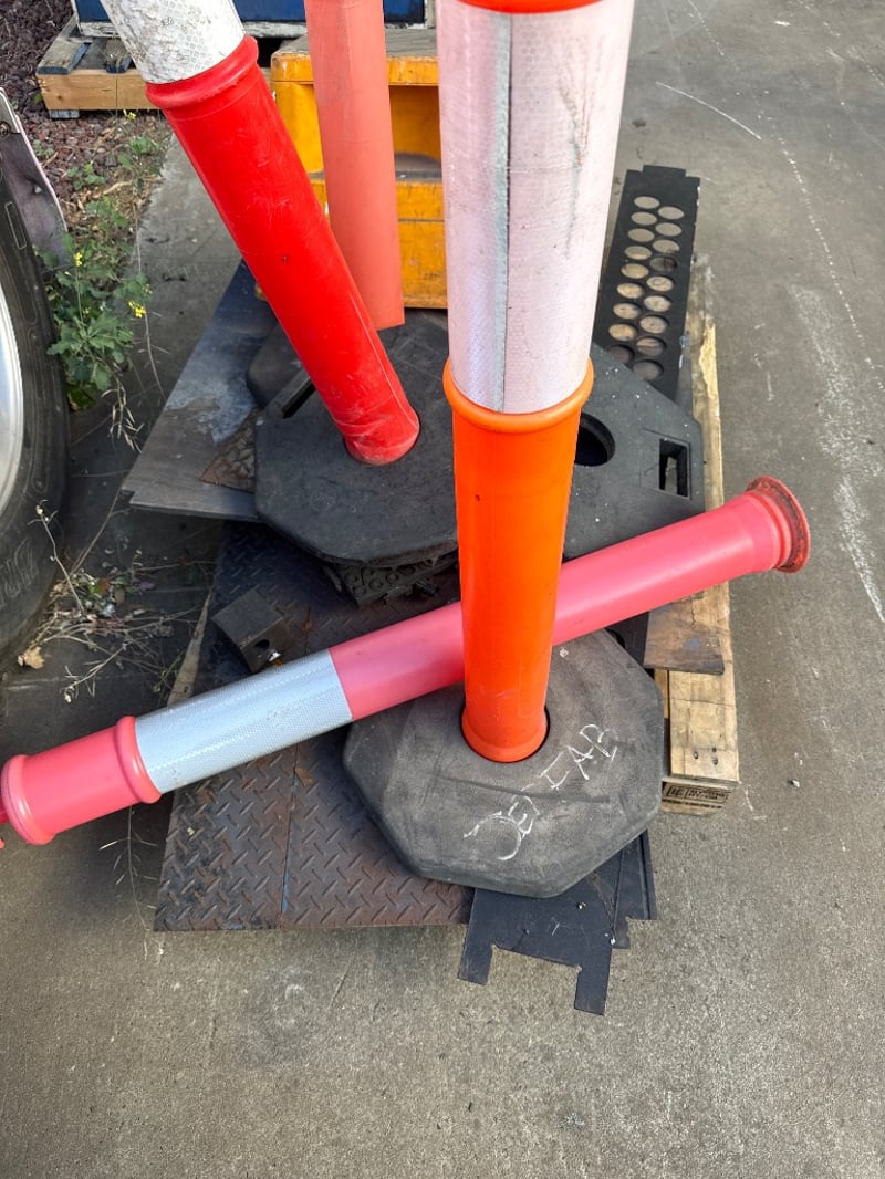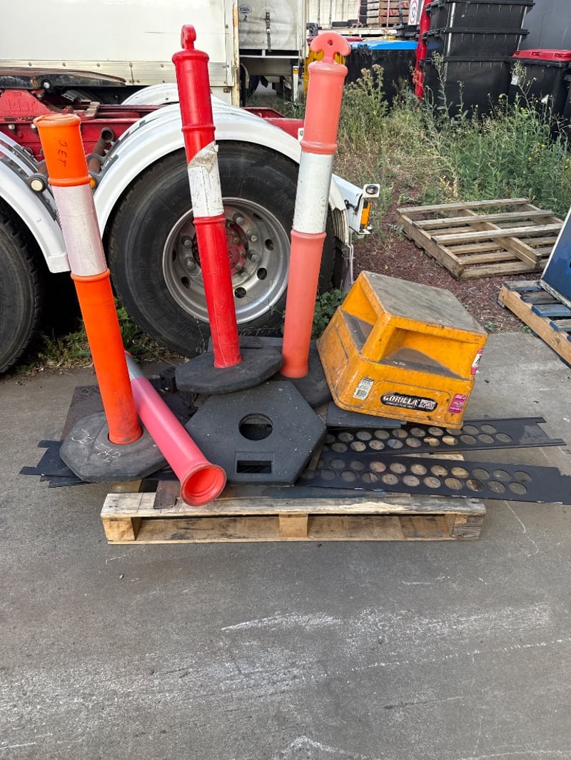 Assorted Equipment, Brands include gorilla ect. Items include Step stool, Traffic bollards, Steel Cover sheets ect.