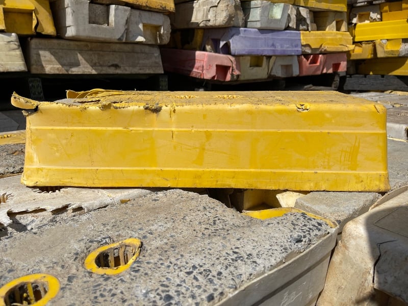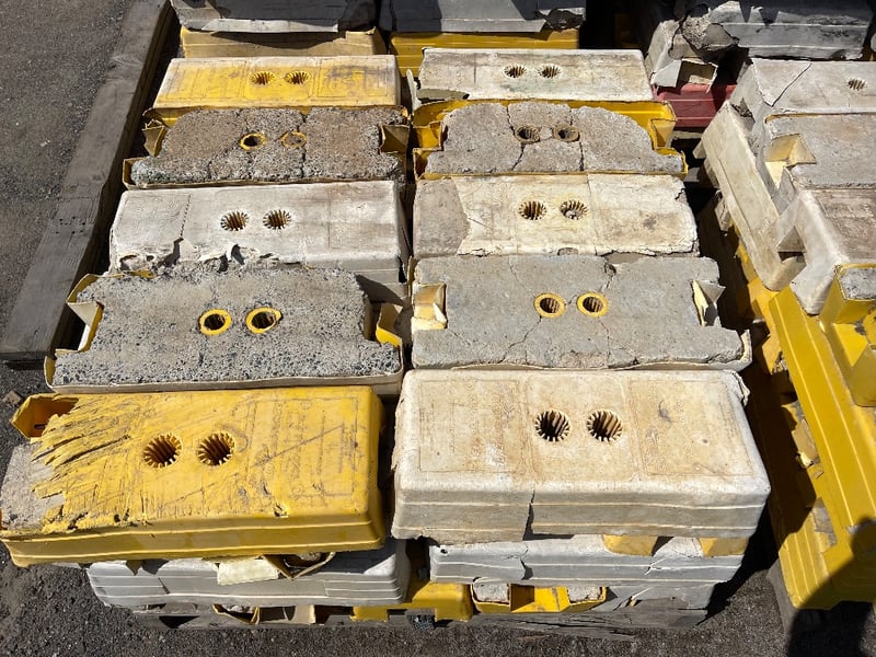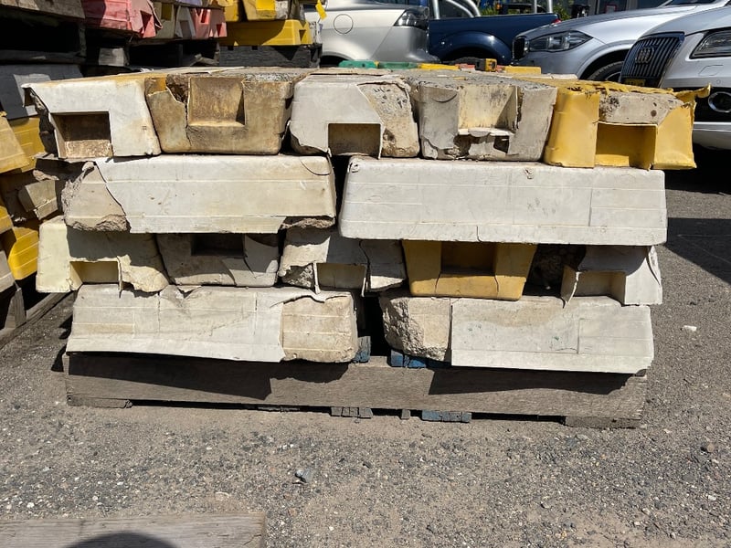 Pallet of concrete fence blocks Sizes, colours and quantities may vary by lot APPROX DIMS: 550cm L, 220cm W, 130 H Sold per pallet #Plant&Equipment
