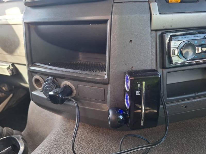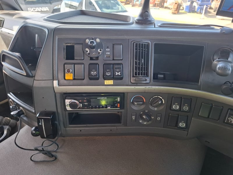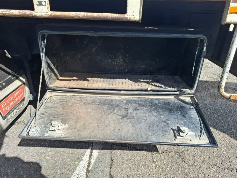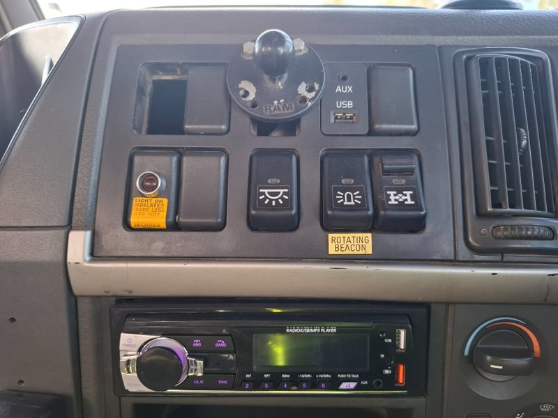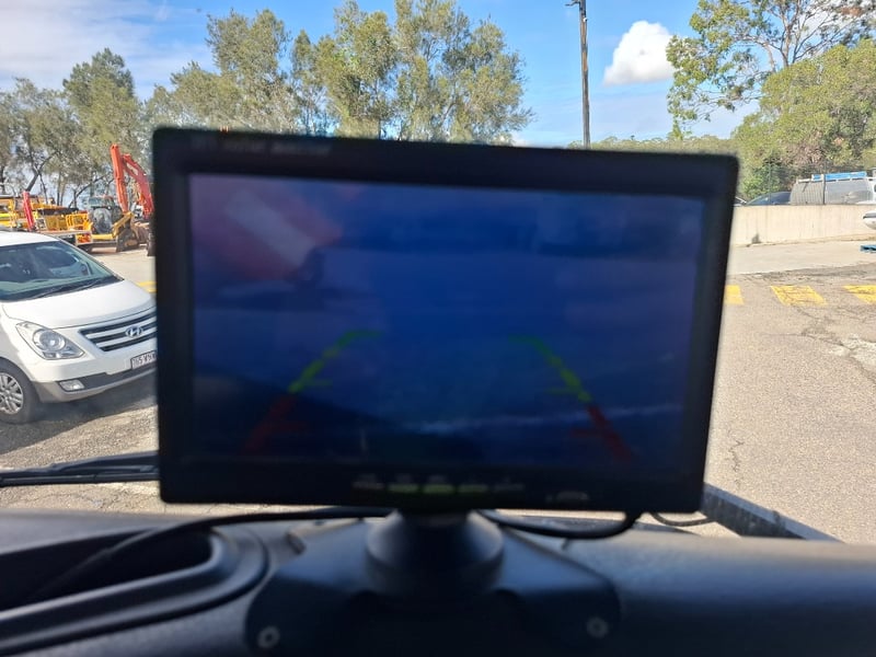 Note: Mounted reverse camera, Seat covers, Radio/Cd Player, Remote for Crane, Brake system failure warning on dash, Storage compartments.