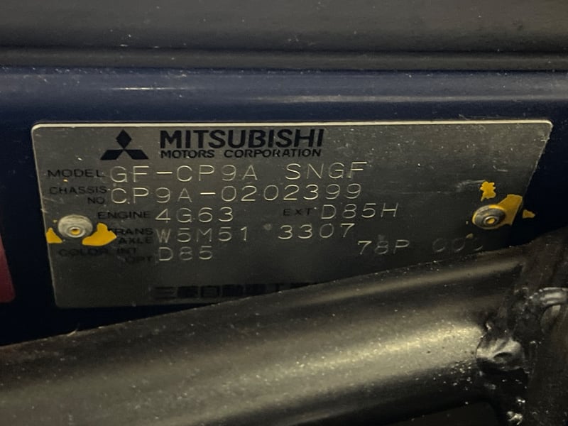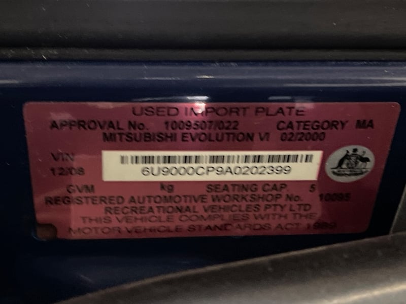 1999 Mitsubishi Lancer Evolution Year: 1999 Make: Mitsubishi Model: Lancer Series: Evolution Body: 4-Door Sedan Drive Type: All wheel drive Odometer: Indicating 69,076 Kilometers Engine: 2.0 Turbo Petrol Transmission: Manual Colour: Blue Seats: 5 Description/extras: VIN: 6U9000CP9A0202399 ENG No: 4G63YT6613 If you have any questions relating to this vehicle, or if you would like to arrange a physical or virtual inspection, please contact Gavin directly on 0455 500 400 Sold unregistered (Key #67CC Marple) Lloyds stock #1043316+1 #CCALL #CCJDM