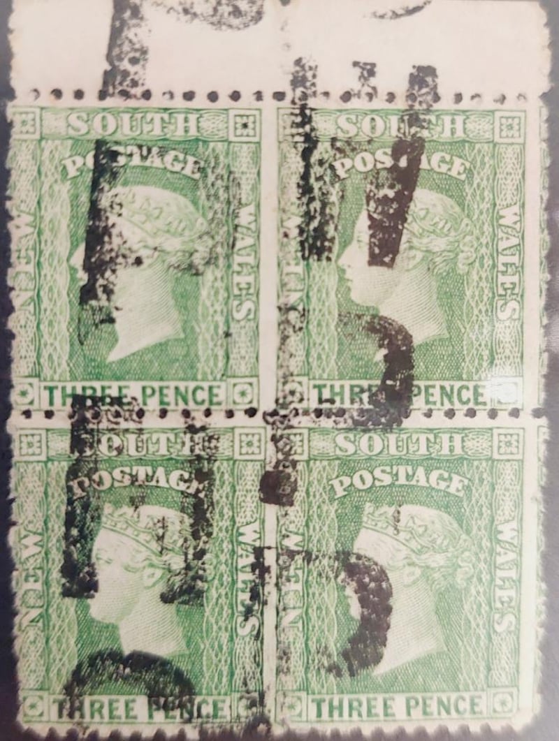 1860 ISSUE , QV ERROR , IMPERFORATE CENTRE STAMP , 3D GREEN , DIADEM , BLOCK OF 4488458+49