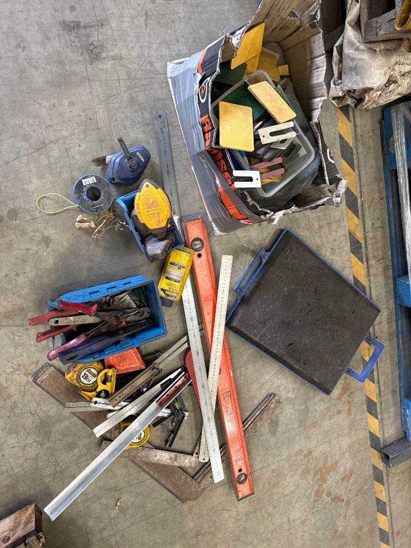 Assorted Tools, Brands include Stanley, BMI, Irwin ect. Tools include Packers, Knee Board, Tape Measure, Chalk Lines, Rulers ect.