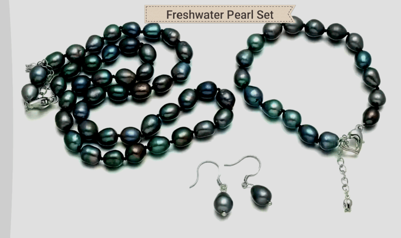 TAHITAN BLACK RAINBOW FRESHWATER PEARLS NECKLACE BRACELET AND EARRINGS SET