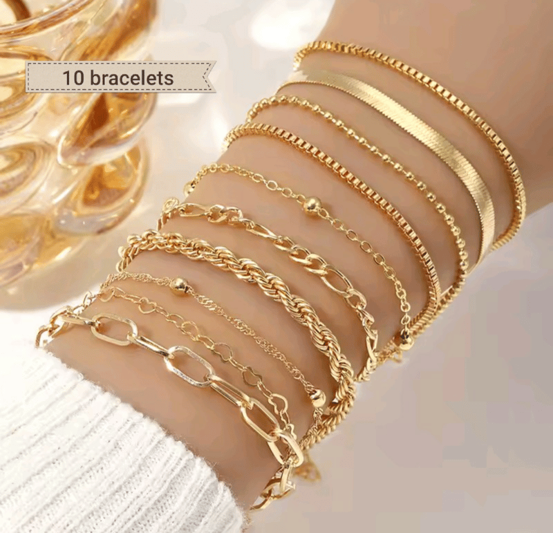 SET OF 10 ASSORTED GOLD COLOR BRACELETS Condition: Good - Refer Images 0 163057+16 FC