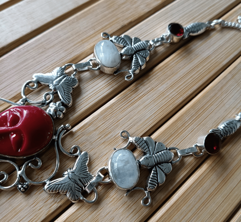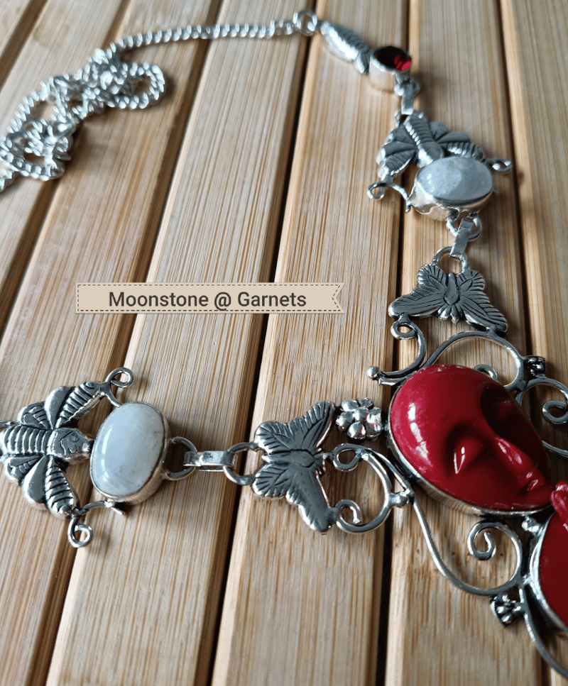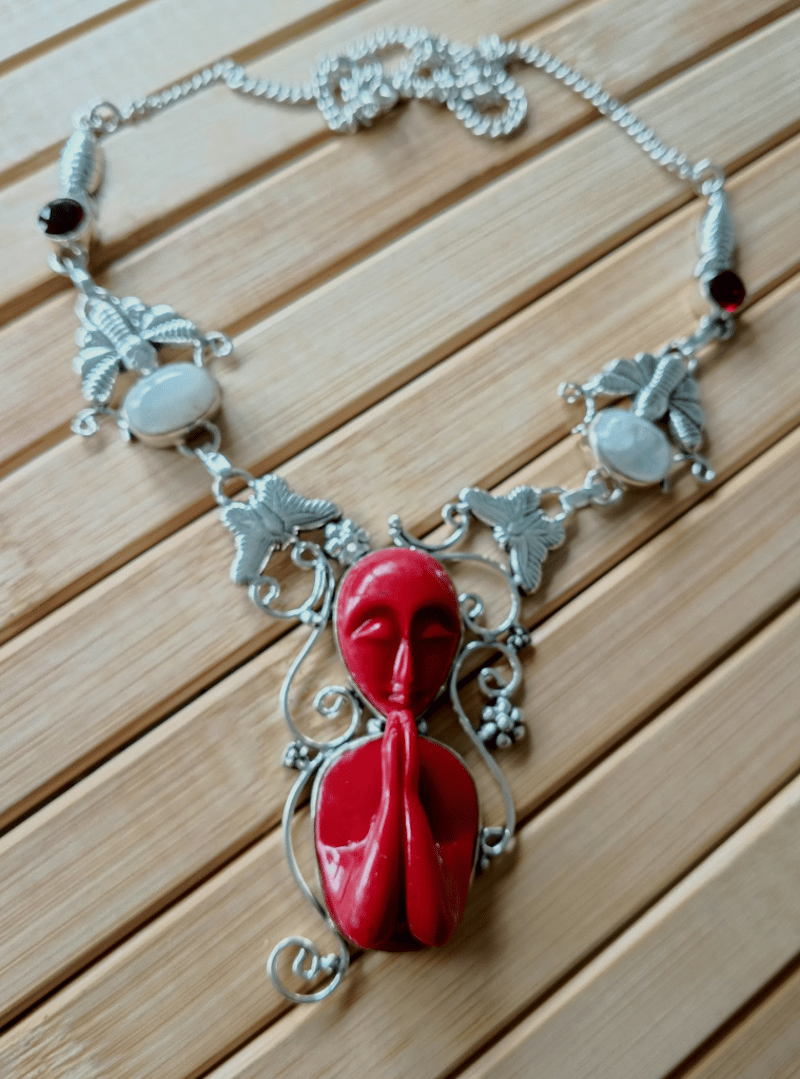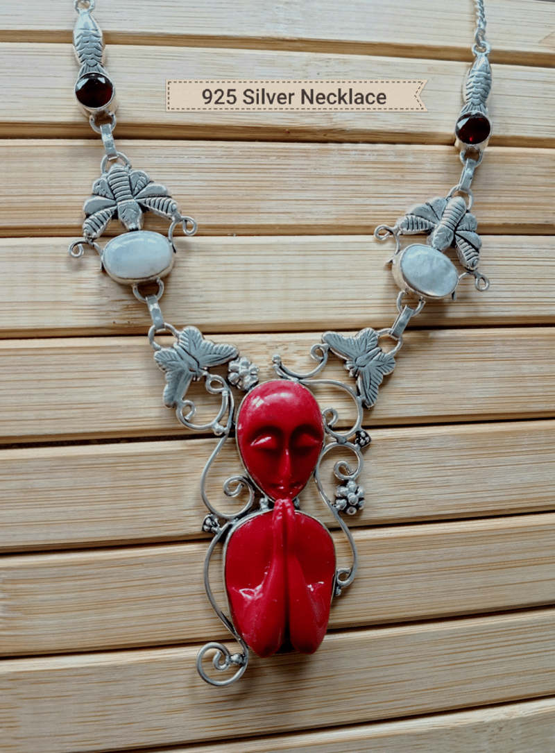 925 SILVER PRAYING GODDESS WITH MOONSTONES AND GARNETS