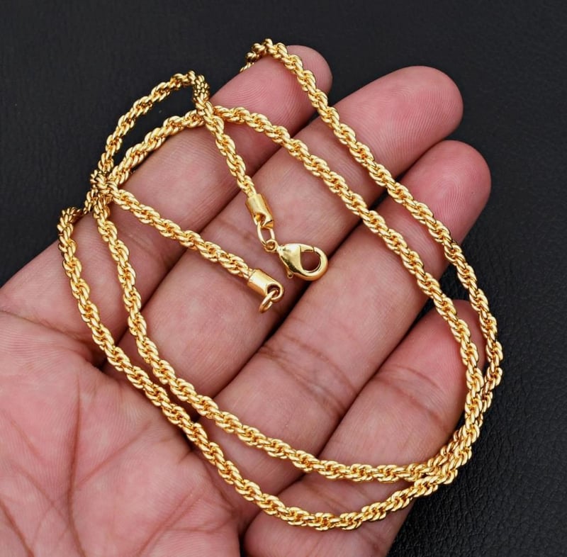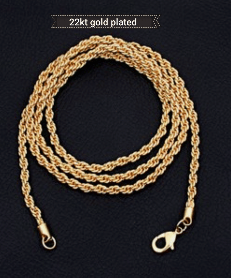 18KT GOLD PLATED ROPE CHAIN 24 IN LONG