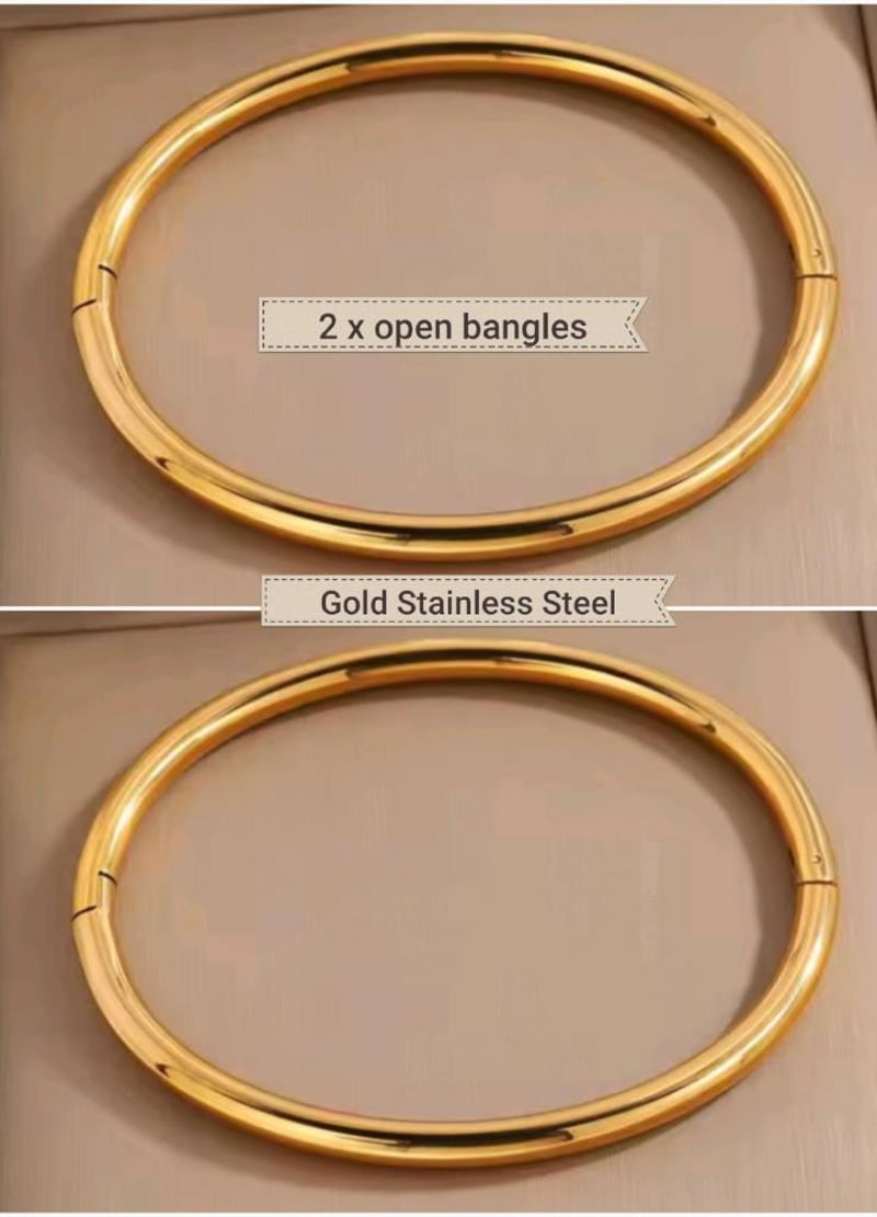2 X GOLD STAINLESS STEEL BANGLES WITH OPENING