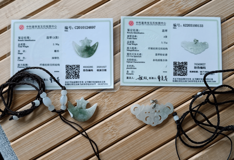 2 X CERTIFIED CHINESE JADE PENDANTS NECKLACES WITH CERTIFICATES Condition: Good - Refer Images 0163057+26FC