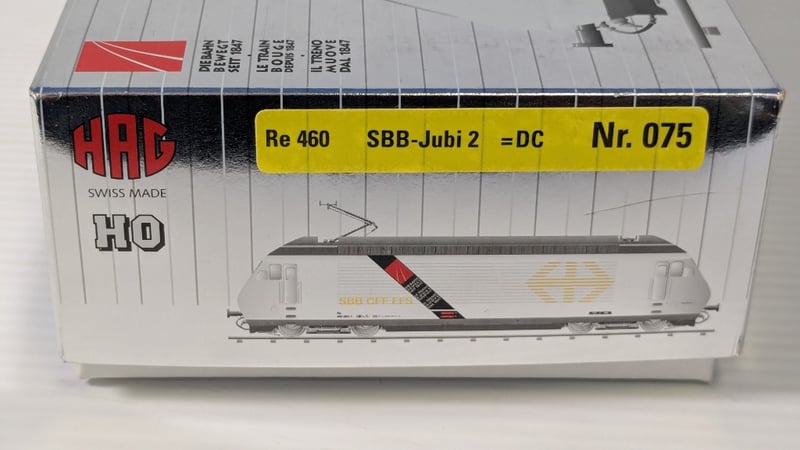 1999 HAG NR.075 HO SCALE MODEL OF THE SWISS FEDERAL RAILWAYS (SBB/CFF/FFS) RE 460 ELECTRIC LOCOMOTIVE. THIS SPECIFIC MODEL IS A SPECIAL EDITION RELEASED TO COMMEMORATE THE 150TH ANNIVERSARY OF SWISS RAILWAYS (1847–1997), OFTEN REFERRED TO AS THE 'JUBI' (JUBILÄUM) EDITION.Condition: Good - Refer To Images232903+9